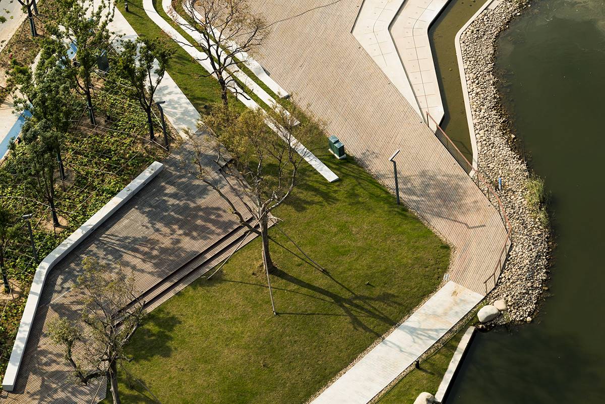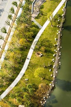 奧雅設(shè)計團隊為這個線性公園提出了一個全新的思路,采用參與性、連接性、開放性、統(tǒng)一性的原則,將整個線性公園串聯(lián)起來,促成河流和城市的重新興連接。設(shè)計為了打破狹窄河道的壁壘,通過推-拉-懸-浮等三維設(shè)計手法延展空間,營造多維的景觀體驗,產(chǎn)生視聽味嗅觸全息的感官感受。