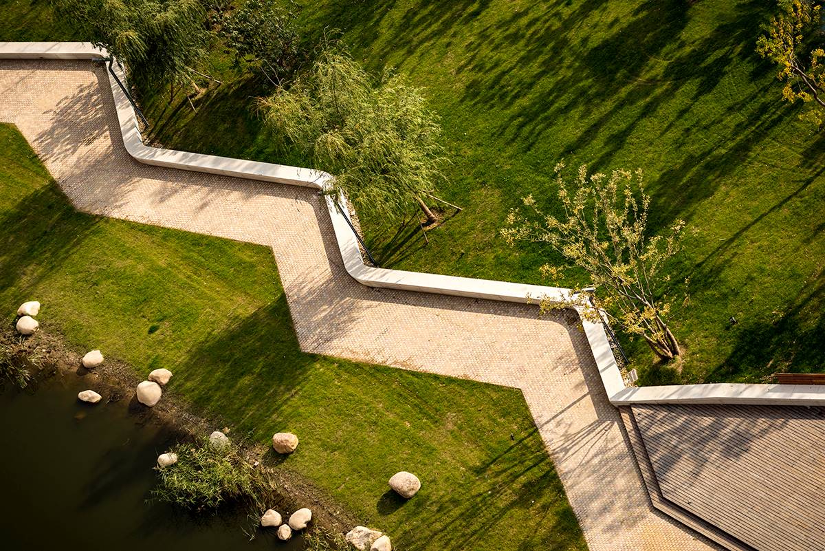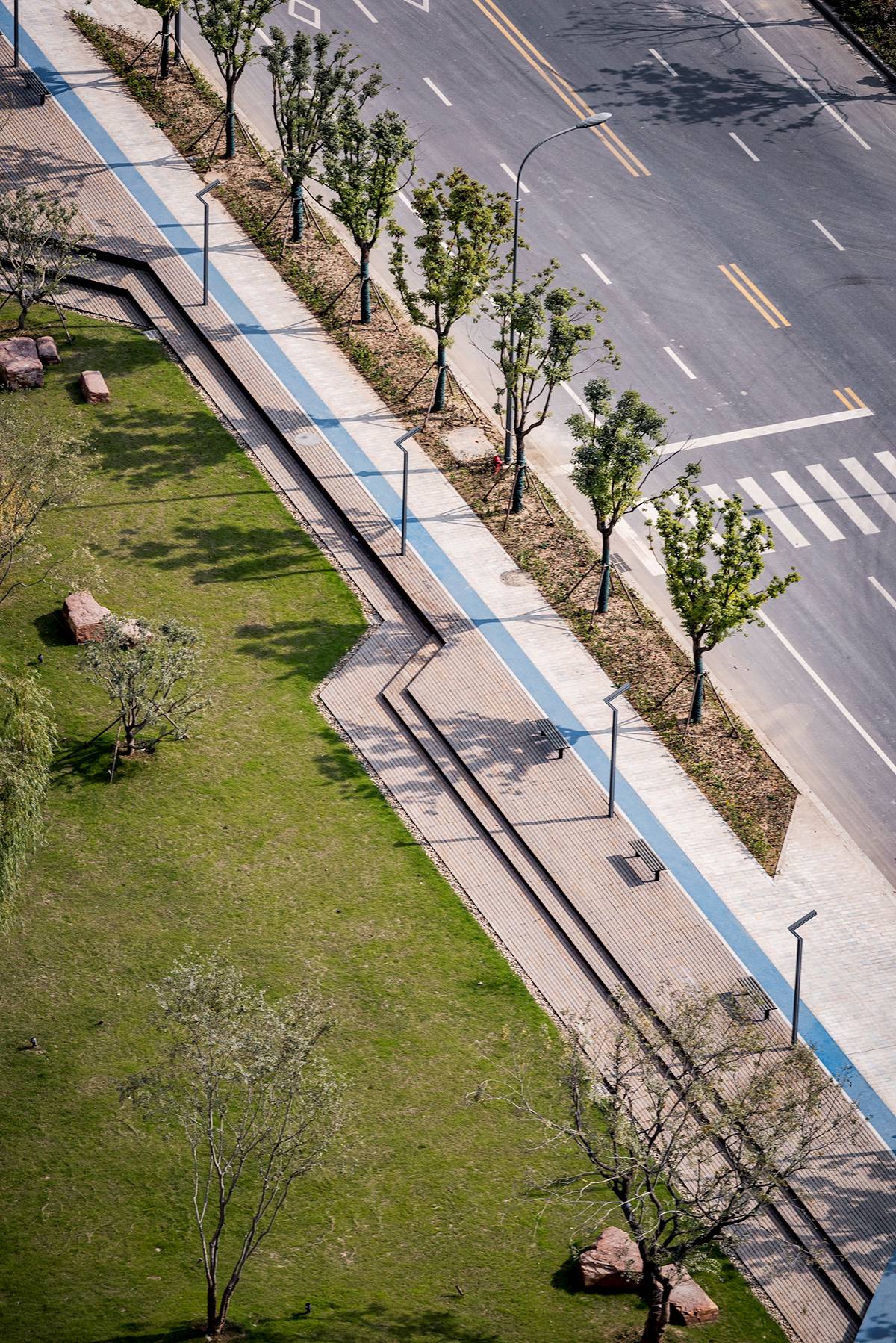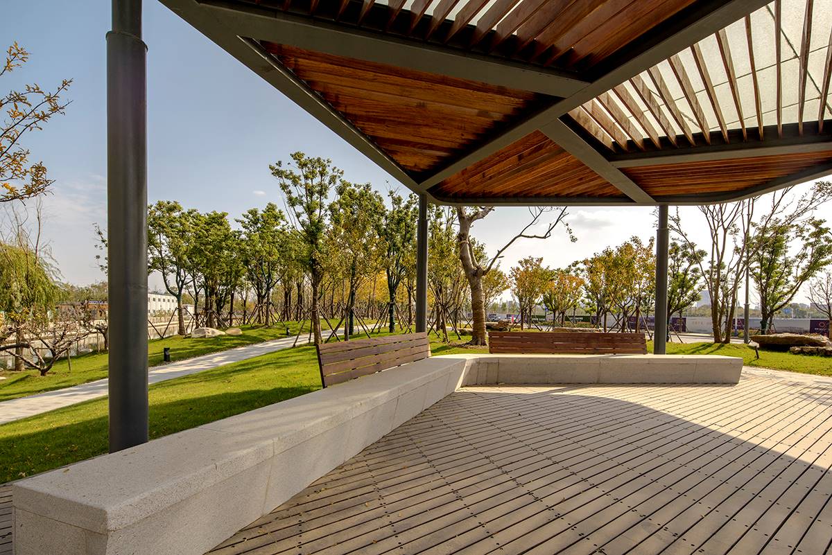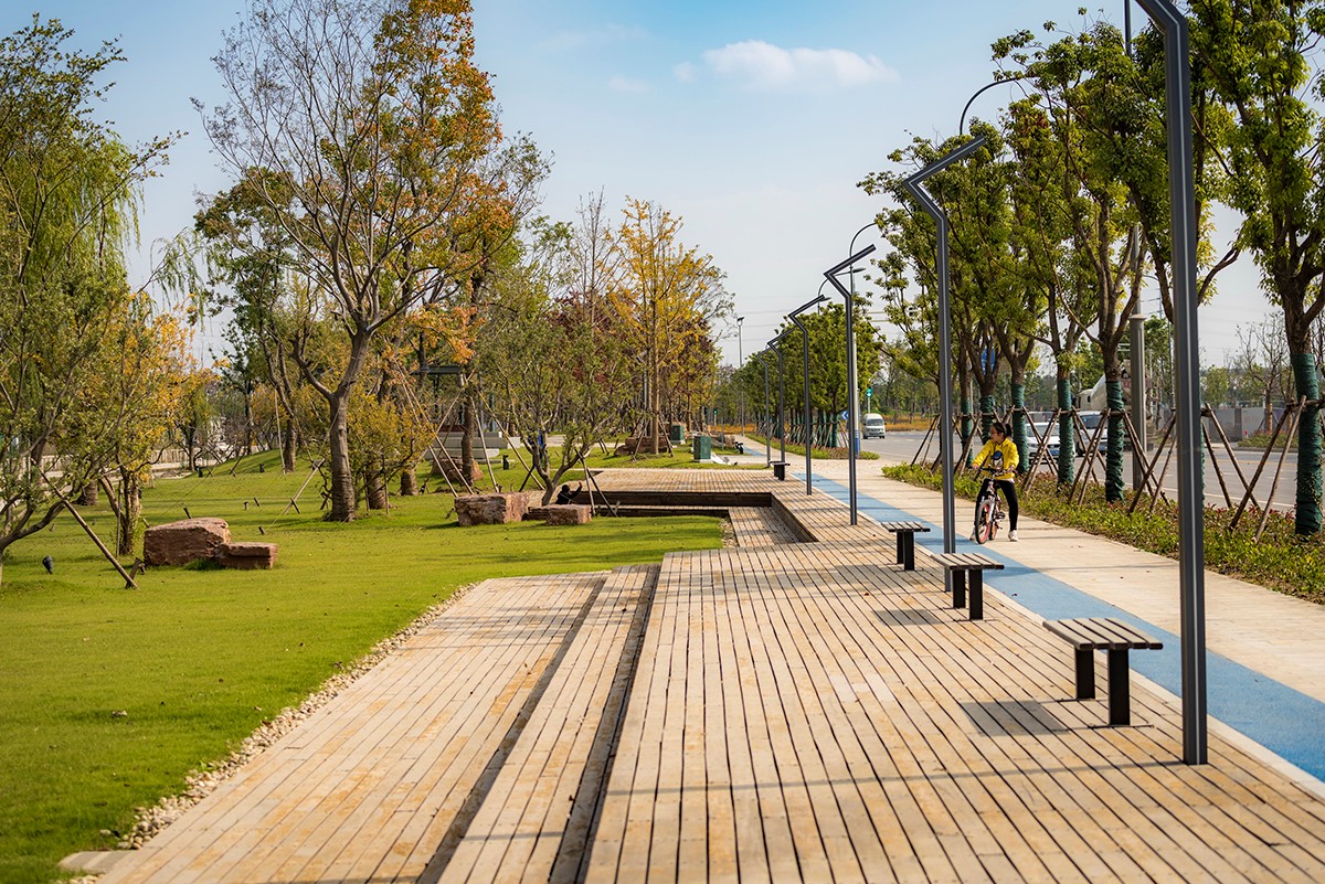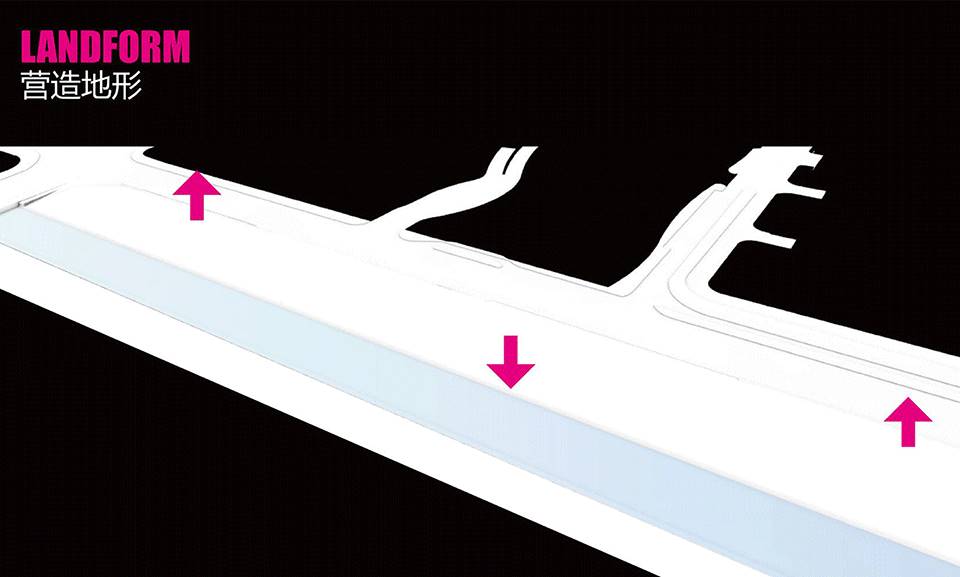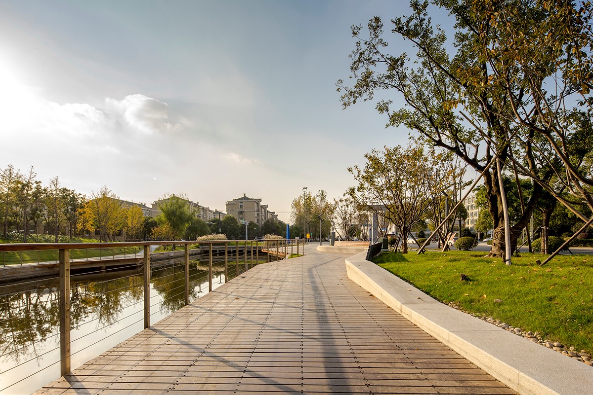 項目總長為 1.5公里,中間被 2條 道路和河流割裂開,團隊需要在局限的 12米 的狹窄空間拓展步行空間并豐富空間體驗。