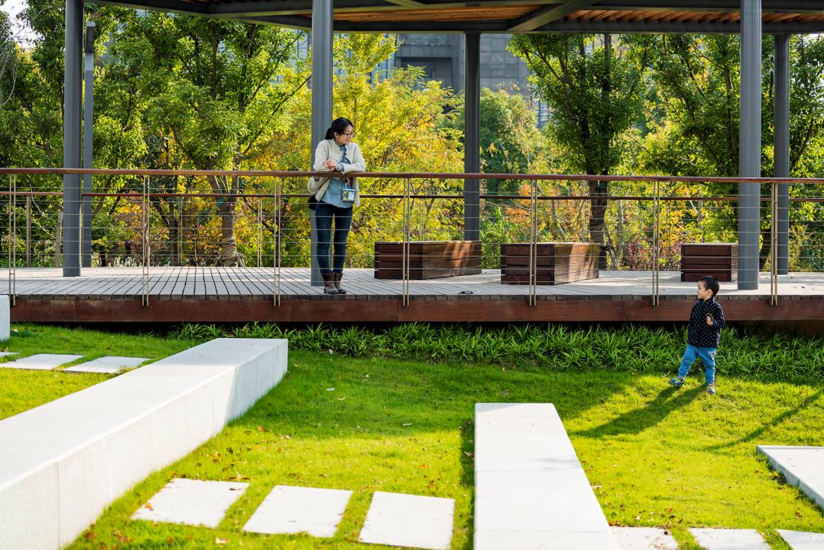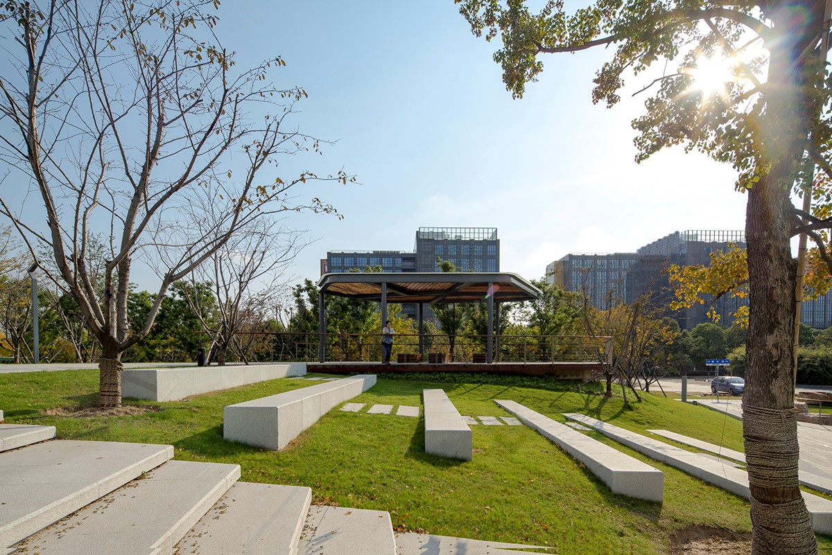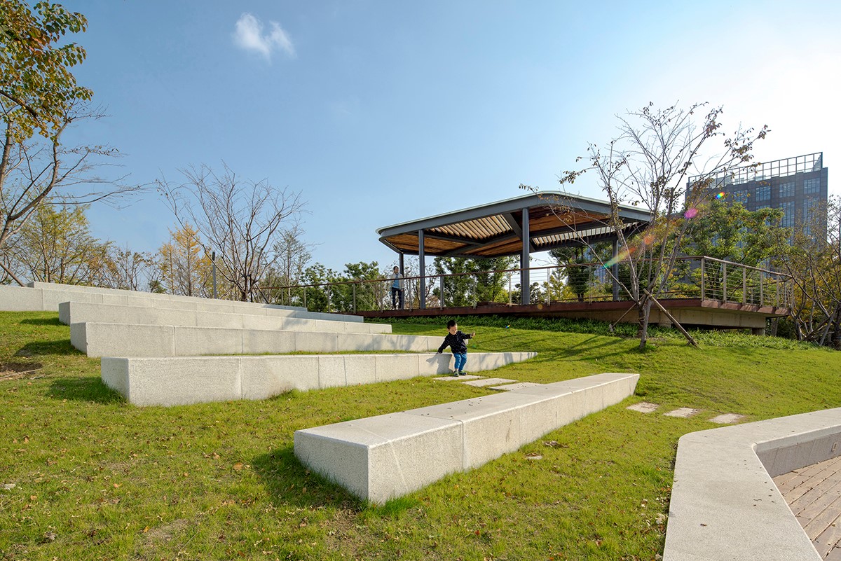 通過場地抬高,一方面可以阻隔街角道路的噪音,另一方面形成小型的活動廣場和觀演舞臺,周邊居民可于此舉辦豐富的活動。
