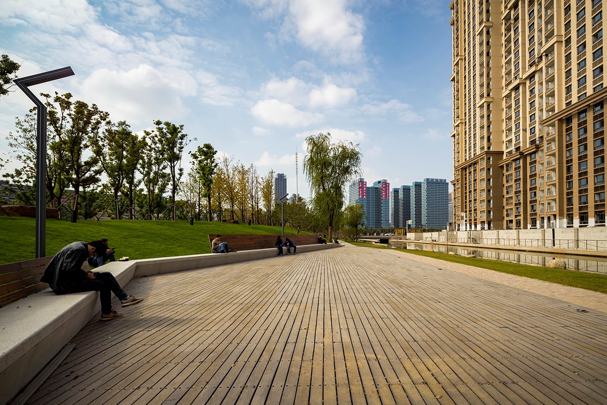 基于周邊大型的購物中心,我們在水岸提供了多功能的陽光草坪,并在濱水提供了櫻花濱水漫步道和休憩空間,使人們在購物的同時享受悠閑的濱水時光。