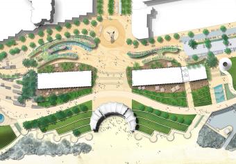 ▼日落之丘局部,一個由從基地上挖掘出來的土方創(chuàng)造出來的全新地形,