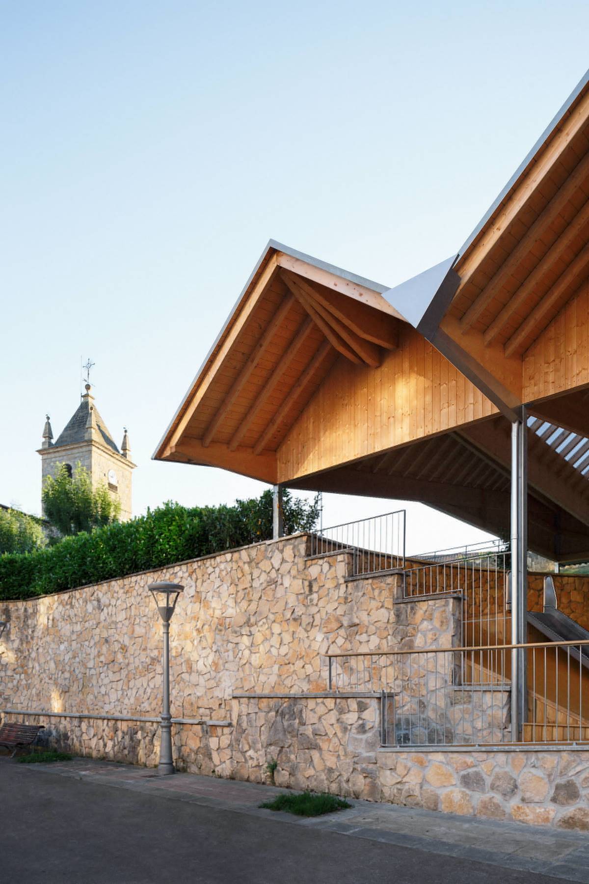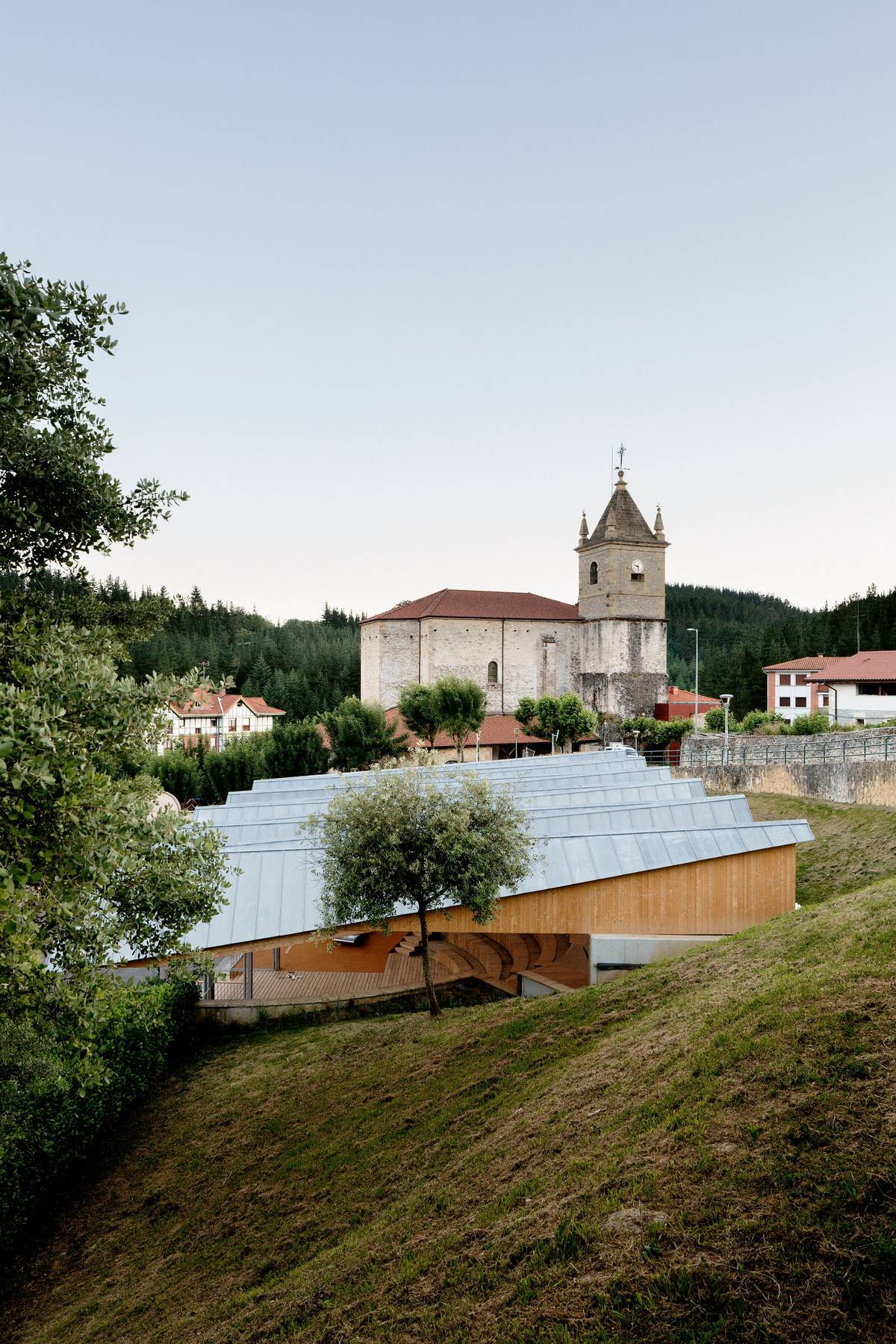 馬利亞維亞 (Mallabia) 的干預方案更新了中心公共空間,凸顯了其作為該城市社會生活中心的重要地位。該城市位于一片地勢起伏較大的區(qū)域,分布著一些小屋建筑群,是當?shù)鼐用竦淖∷?。教堂、市政中心、廣場位于中心,通過在周圍建起一座小型建筑,體現(xiàn)了巴斯克鄉(xiāng)村地區(qū)的典型風貌。
