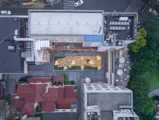 安福路是呈現(xiàn)設(shè)計理念的絕佳選址:市井氣息的居民區(qū),和辦公樓、餐廳、商店、學校構(gòu)成的公共空間交融一體,三十層的摩天高樓和三層平房比肩而立。在上海,這樣的尺度融合實屬少見:新城無需將老房子夷為平地為代價,繁榮也未必要靠標新立異的商業(yè)設(shè)施錦上添花。不過,這里恰巧缺一個花園,AIM填補了這個空缺。