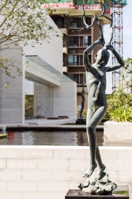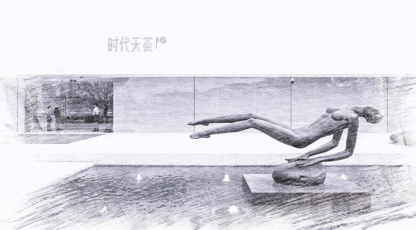 如果說時代天薈是充滿藝術(shù)生活情調(diào)的社區(qū),那景觀精心布置的雕塑則為此再度升華格調(diào),選用知名藝術(shù)家廣州雕塑院陸增康院長的個人限量的三件雕塑作品:分別是主入口水景上的《清泉》、與樣板庭院搭配的《雀躍的童年—金色鳥》、泳池區(qū)《清澈的小河》。