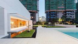 展示區(qū)流線關(guān)系從停車場、銷售中心、主入口到泳池會所區(qū)域。設(shè)計回歸本質(zhì)、回歸點線面、回歸體塊,真正地將建筑、景觀、室內(nèi)融為一體,共同營造空間的流動感,品質(zhì)感和歸屬感,詮釋全新現(xiàn)代主義居住風(fēng)范。