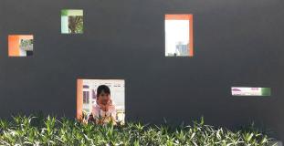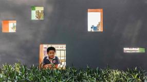 ▼學(xué)校LOGO墻,開洞窗戶與字體結(jié)合一起
