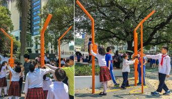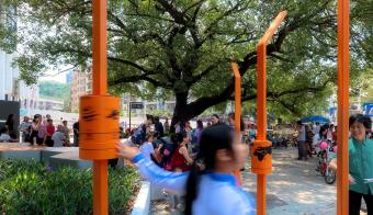 ▼將14個童年游戲剪影刻畫在花基上,激起場地停留者對童年的回憶