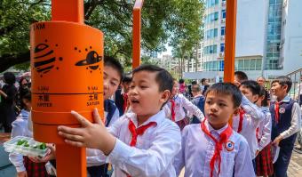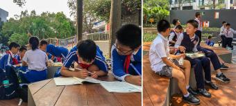 ▼上下課后學(xué)生在此結(jié)伴寫作業(yè)和學(xué)習(xí)交流