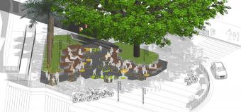 ▼大樹樹池由14張童年游戲連環(huán)畫組成