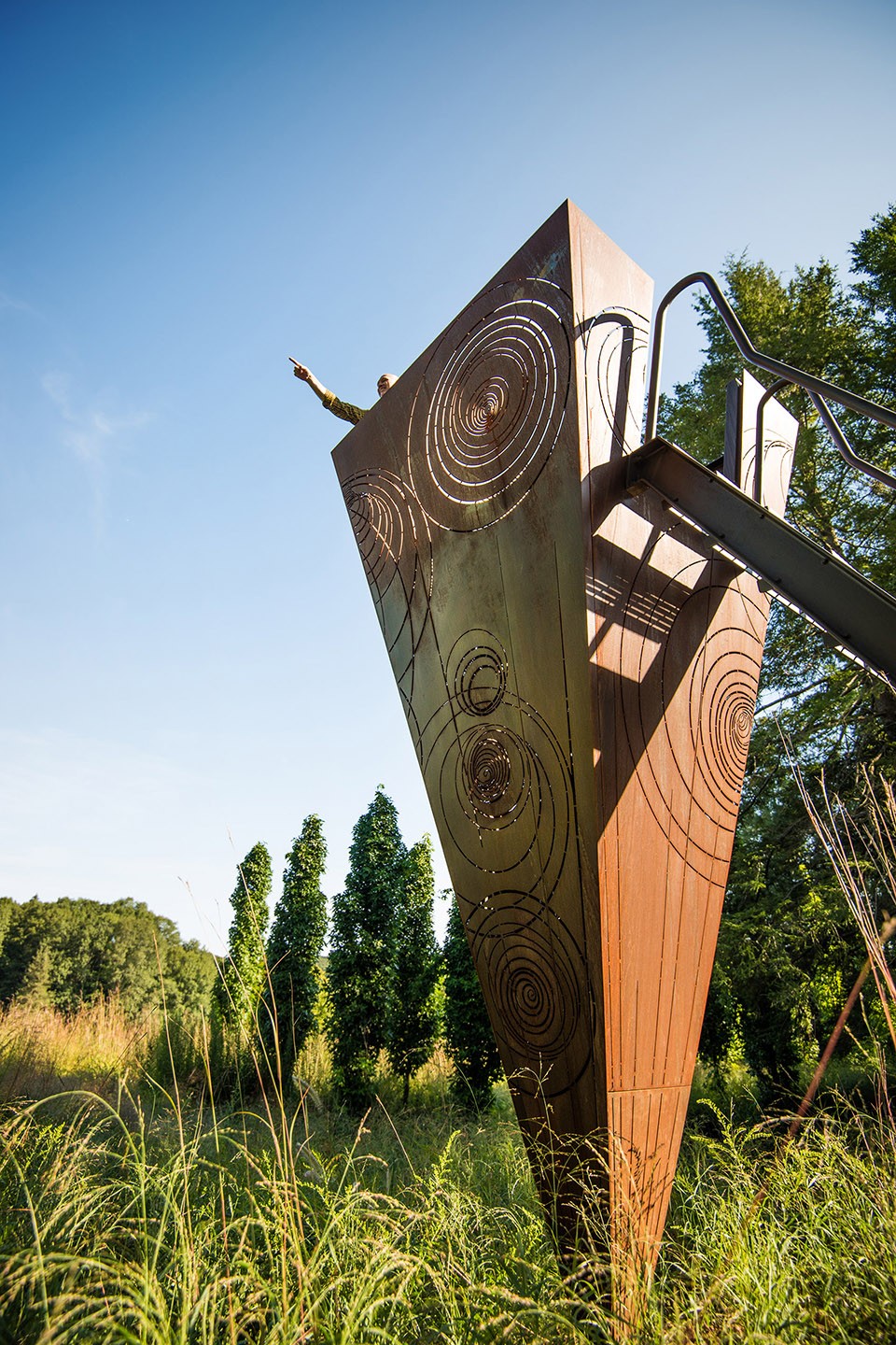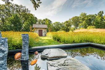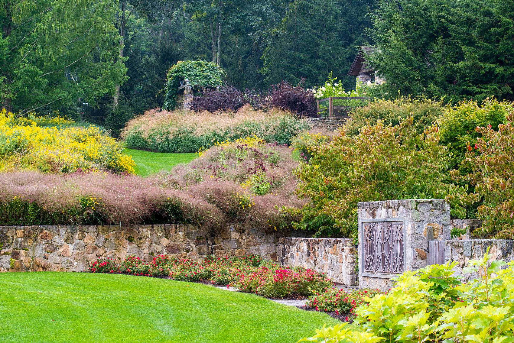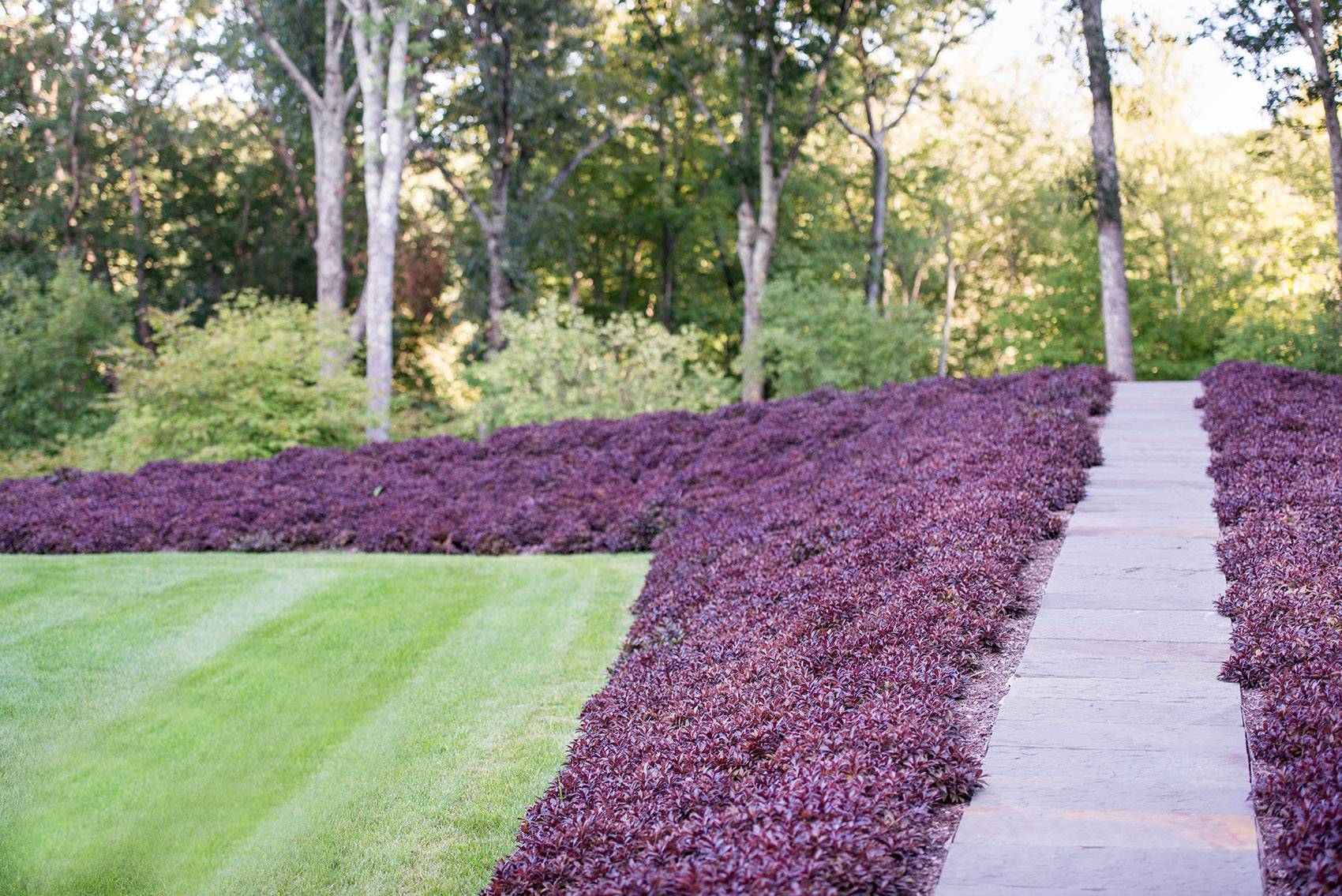 景觀設(shè)計師將八處水景作為各種空間的特色和焦點,同時還設(shè)計了一系列具象的藝術(shù)以便對景觀產(chǎn)生巨大的影響。所有的墻壁均由當(dāng)?shù)氐氖慕ㄔ於?,草地花園藤架也都是用當(dāng)?shù)乜撤ズ痛蚰サ陌紫鹉敬罱ǘ傻摹B访嫔系那嗍瘎t來自距離花園75英里以內(nèi)的采石場。設(shè)計師號召當(dāng)?shù)氐氖止に嚾藚⑴c花園的建造過程,以強(qiáng)調(diào)其可持續(xù)發(fā)展的戰(zhàn)略措施。此外,設(shè)計師主要使用當(dāng)?shù)氐闹脖?,以?chuàng)造一種富有彈性的環(huán)境,同時使花園能夠更加和諧地融入康涅狄格州的鄉(xiāng)村環(huán)境。