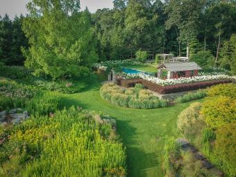 ▼通過草地上的小徑到達(dá)水泵房,水泵房被花心呈黑色的多毛金光菊環(huán)繞著