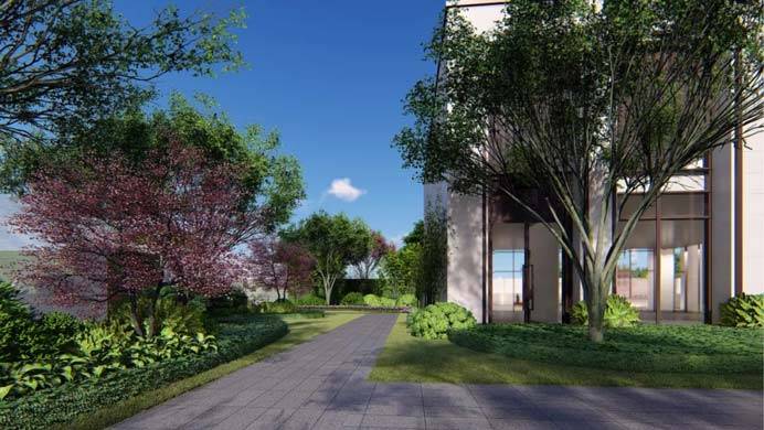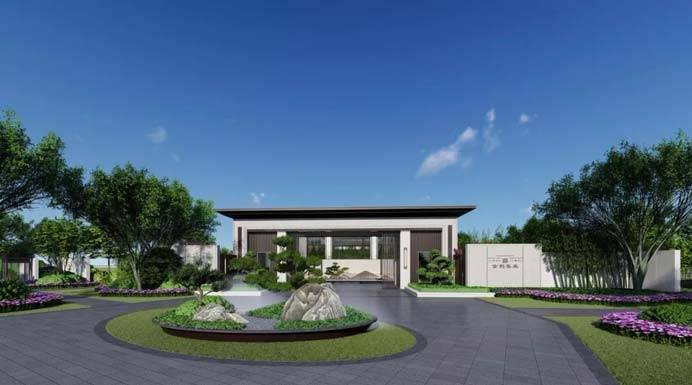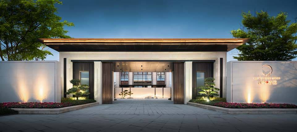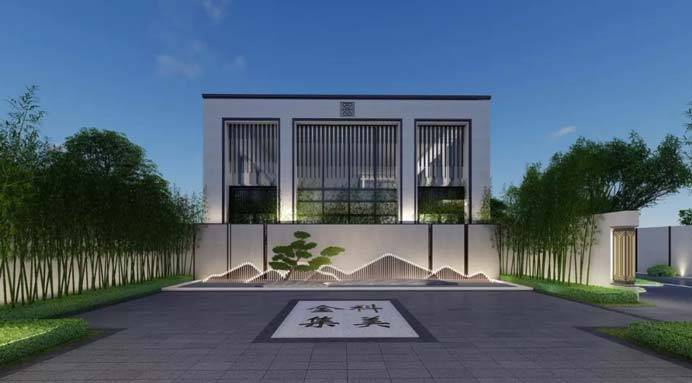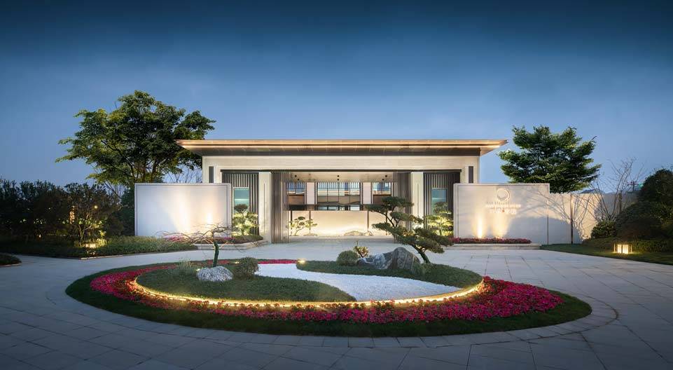 象牙白棕的配色彰顯金科府系高檐府門(mén)的氣度格調(diào),精心布置珍稀古松、名貴石材等元素,連同影壁上的寫(xiě)意山水仿若前場(chǎng)的一一映射,傳統(tǒng)府邸的尊貴禮序和清幽禪意于此交匯融合。