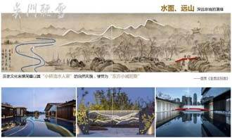 根據(jù)人行流線的設(shè)置,提取水面、遠(yuǎn)山為靈感元素