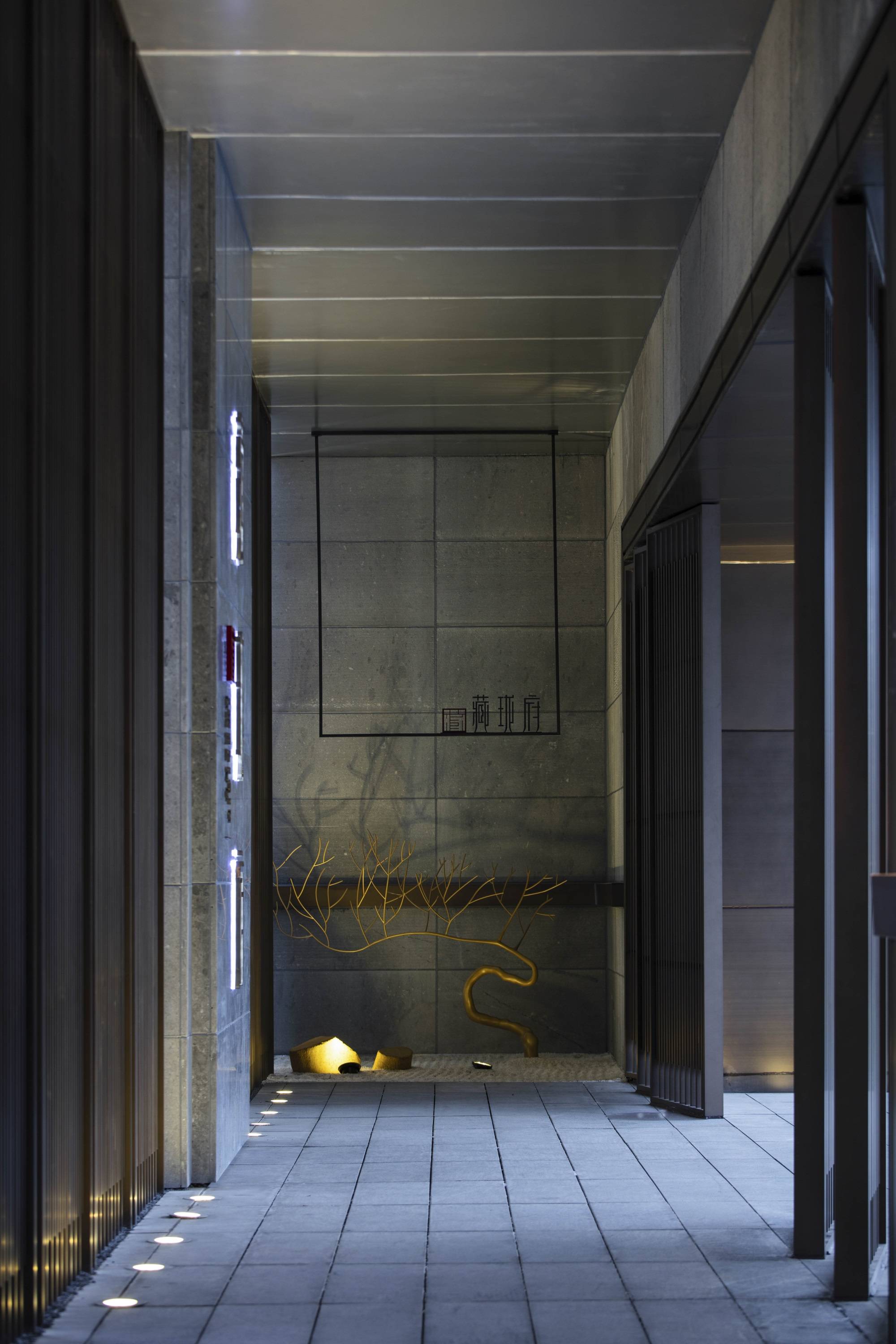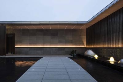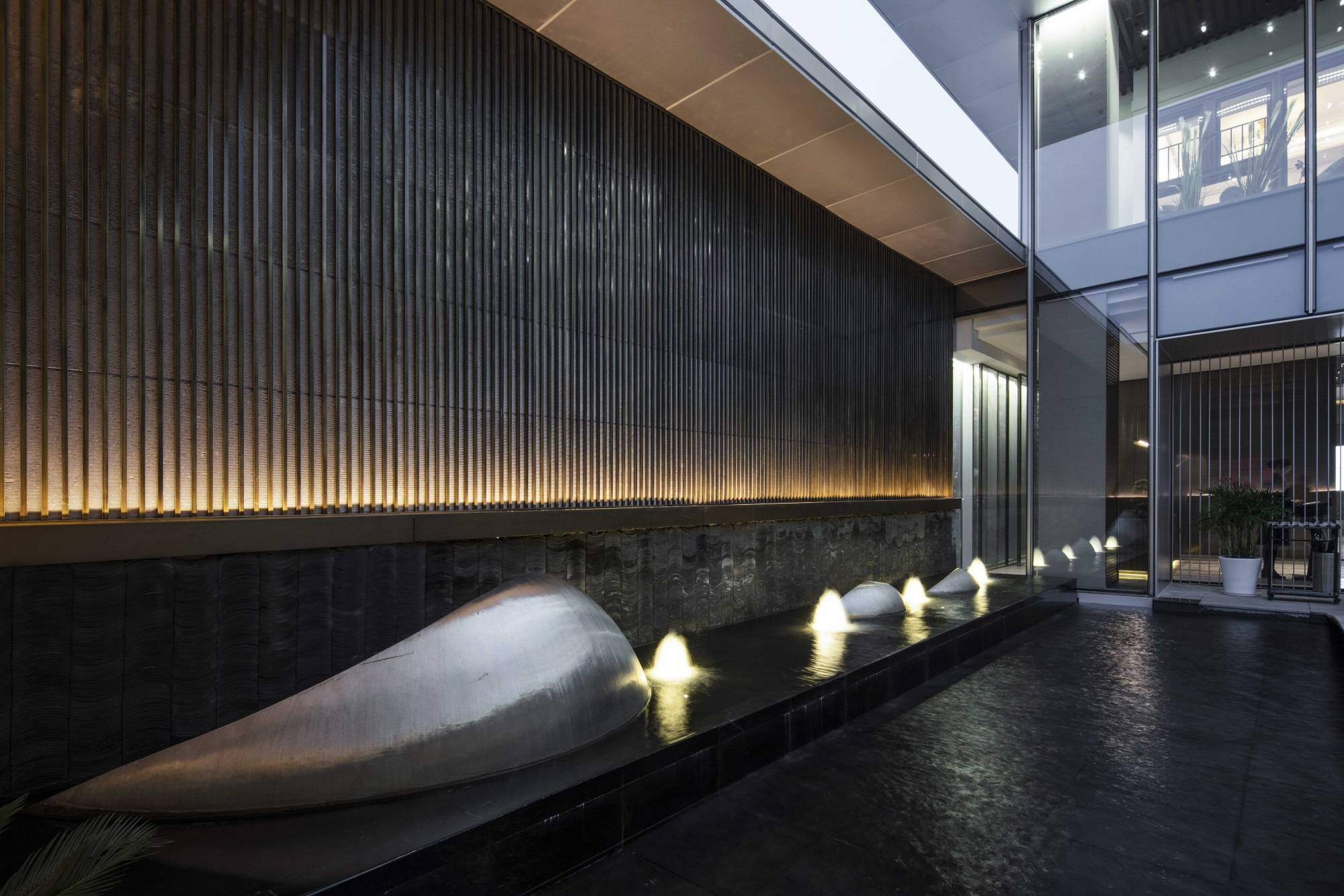 后院空間以枯山水空間為主,仿山水島嶼,呼應(yīng)城市記憶,作為建筑邊裝飾及洽談區(qū)的看出景。