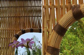 竹子在本質(zhì)上是一種高效的結(jié)構(gòu)材料:強(qiáng)度高,韌性大,并和鋼鐵一樣具備拉張強(qiáng)度。分段的空腹結(jié)構(gòu),賦予其極為輕質(zhì)同時又易彎成曲線輪廓的彈力特性。這些構(gòu)造性能造就了竹子的材料特性。與木材相比,有著更強(qiáng)的彈力與柔韌性優(yōu)勢,且吸水膨脹率以及加熱干燥收縮率都較小。