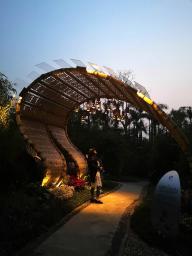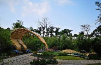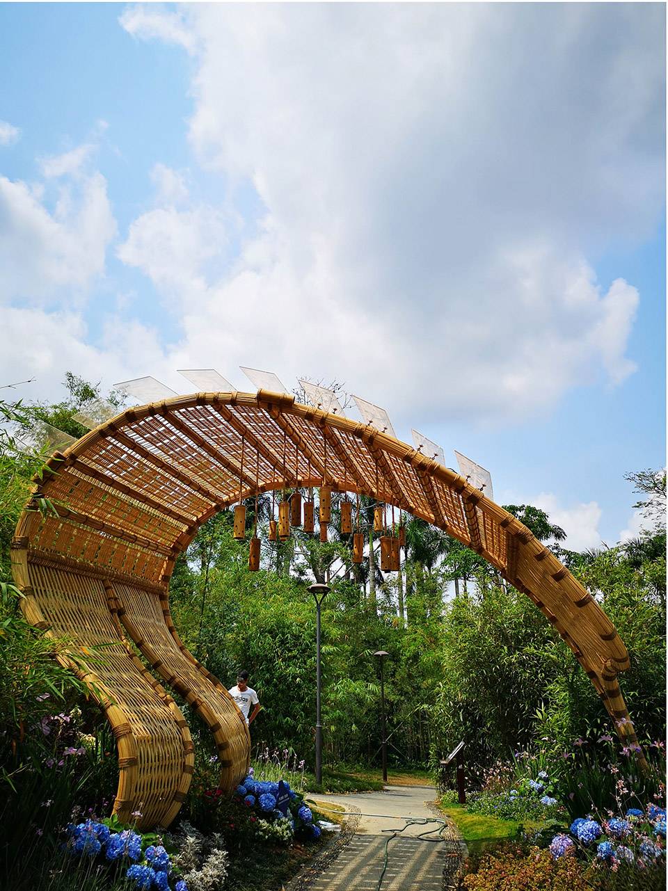 粵港澳-2019深圳花展,在深圳植物園竹園的三岔路口,一個頗似浪花的造型佇立期間,兩旁排布種植了大片的花卉,高低相間,錯落有致,仿佛是一片托起鮮花的海浪,引得游人紛紛駐足。上前細(xì)觀,方才意識到,原來這浪花的造型,竟是由竹子編制而成!這就是建筑師謝軍先生為這次花展精心創(chuàng)作的現(xiàn)代竹編公共藝術(shù)品“潮”。