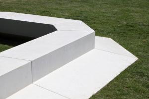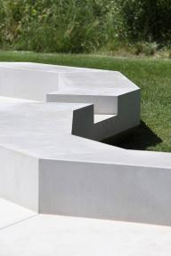 家具裝置在雙重方向延伸并圍合同一中心,吸引人們?cè)谶@里進(jìn)行多樣的使用和活動(dòng)。蜿蜒曲折的長(zhǎng)凳與附近的樹木構(gòu)成意想不到的藏身之所。草坪、邊界、平臺(tái)、面、灌木、平整區(qū)域?yàn)槟_、手、肘、兒童游戲、桌布、膝蓋等提供了可以使用的表面。在這里人與人之間形成多種可能的關(guān)系,通過彼此之間的朝向、距離,人們通過身體的位置表達(dá)他們對(duì)交流、遇見某人、玩?;颡?dú)處的信號(hào)。這件充滿趣味性的家具總長(zhǎng)90米,將空間活力匯集到花園的中心。56塊白色預(yù)制混凝土板拼接成的自由形式呈現(xiàn)清晰的幾何形態(tài)。這一設(shè)計(jì)贏得了2014年P(guān)almarès CAUE 78e獎(jiǎng)。