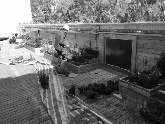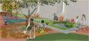 主樓后側(cè)帶狀綠地是一個重要的景觀節(jié)點(diǎn),此處將小農(nóng)夫菜園和雨水花園一體化設(shè)計,輔以排水暗溝、雨水收集罐的排水收水措施,實(shí)現(xiàn)景觀功能、生態(tài)功能、教育功能的深入結(jié)合。