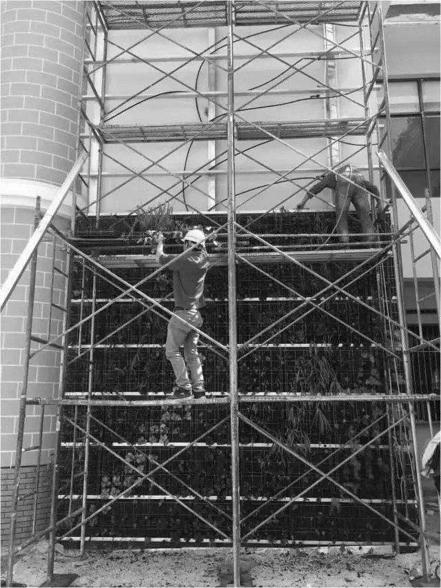 “綠色城堡”首先是一座“立體城市”,通過垂直綠墻和綠色露臺得到實(shí)現(xiàn)。入口區(qū)建筑主立面成為完全覆蓋著綠色植物的墻壁,介質(zhì)采用優(yōu)質(zhì)的人工營養(yǎng)“壘土”。綠墻和改造后的二樓活動露臺成為小朋友樂于進(jìn)入探索的神秘花園 。