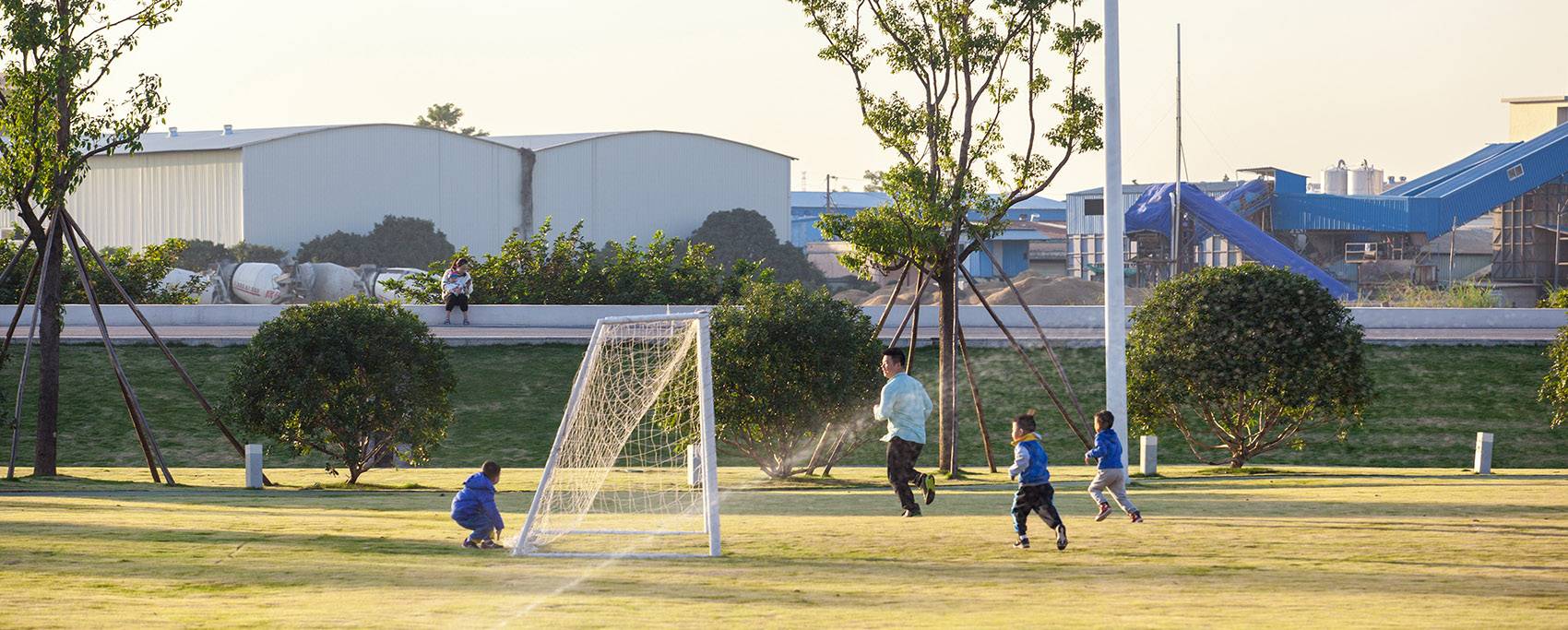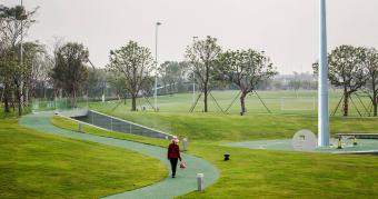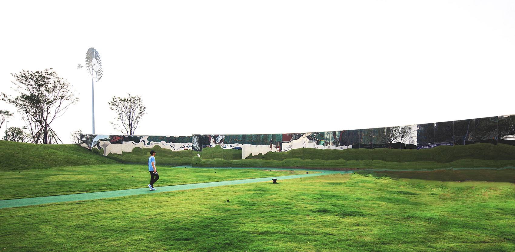 我們希望天空是藍(lán)色的,大地是綠色的,溪流是清澈的……所以我們?cè)谌肟谧隽艘粭l白色的“小溪”,希望給人們創(chuàng)造出一種清新的感覺。沿著小溪進(jìn)去是兩側(cè)高大的樸樹和遠(yuǎn)處的荔枝樹林,一切都非常的靜謐。起伏的地形模糊了空間的邊界,時(shí)上時(shí)下時(shí)緩時(shí)急,時(shí)內(nèi)時(shí)外時(shí)開時(shí)合,整個(gè)場(chǎng)地創(chuàng)造了非常有趣的體驗(yàn)。