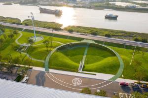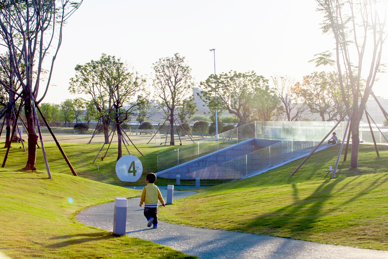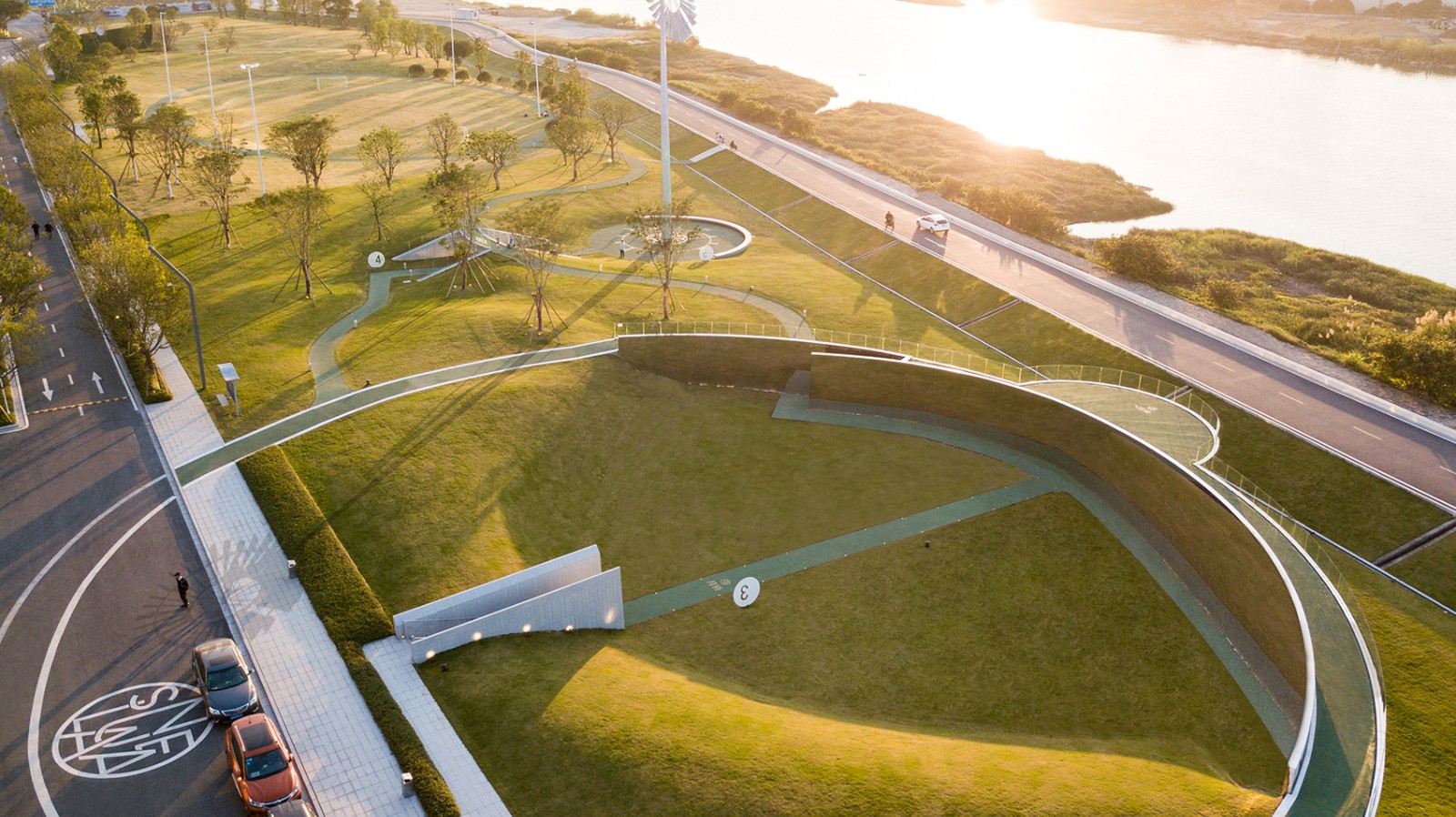 ▼延續(xù)河床的肌理,用大地藝術(shù)的手法塑造了豐富的地形變化?Ben羅志宗