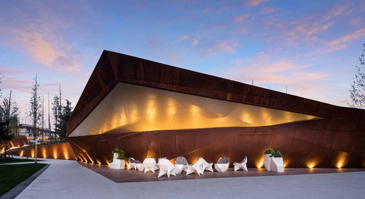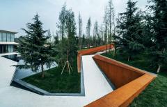 耐候鋼板包裹了整個場地中的幾何空間,隨著時間的推移,材料與公園一起演變,與環(huán)境一并生長,和公園里的折痕一同變成場地不可分割的一部分。公園將城市生活引入自然中的同時,也將社區(qū)與瀨溪河編織在了一起。