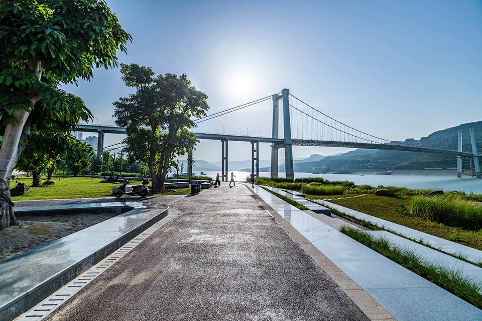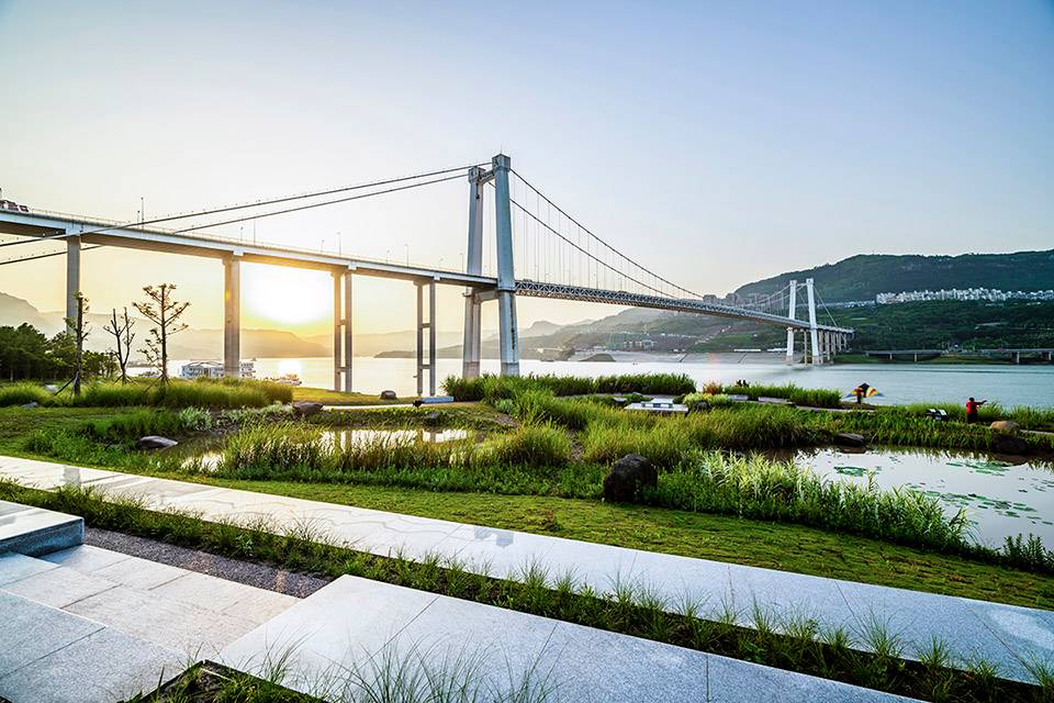 我們在針對重慶市萬州區(qū)長江二橋?yàn)I水空間進(jìn)行設(shè)計時,提出還原濱水空間最初風(fēng)貌,生態(tài)自然低碳的景觀理念,打造人、自然、城市和諧共生的生態(tài)型濱水公園。設(shè)計充分彰顯了水域景觀的文化性,將當(dāng)代文化藝術(shù)與地域?yàn)I水文化相結(jié)合,從而勾起人們對于濱江文化的懷念,為城市增添新的名片。