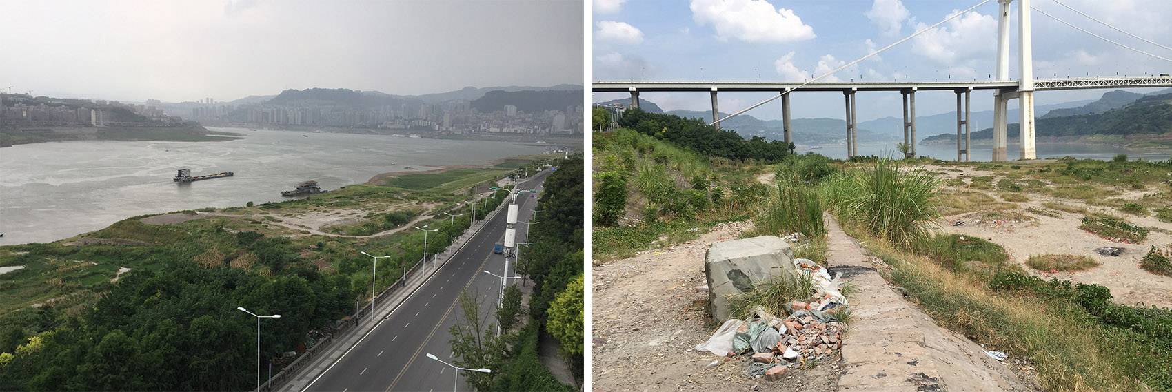 濱水空間不僅是一個城市生態(tài)系統(tǒng)及環(huán)境提升的重要體現(xiàn),也是承載城市活動、執(zhí)行城市功能、體現(xiàn)城市形象的重要載體。該項(xiàng)目用地原為萬州長江二橋北橋頭下面的一塊灘涂地,面積約5萬平方米左右,處于消落帶位置,地塊大小隨著水位起落而變化,一直以來處于荒蕪狀態(tài)。