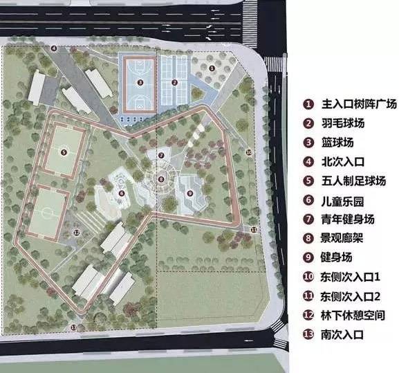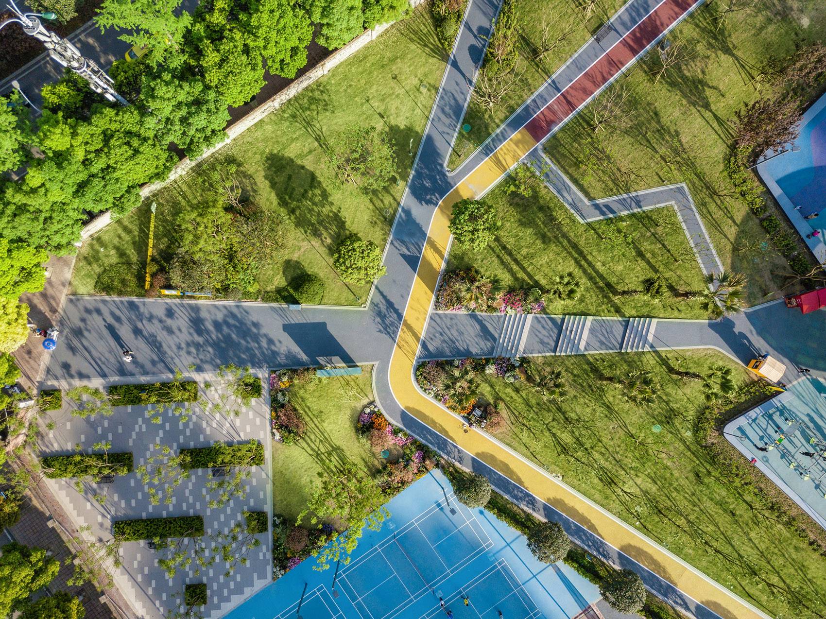 ▼公園鳥瞰圖,打造一個(gè)滿足全年齡活動(dòng)的社區(qū)公園