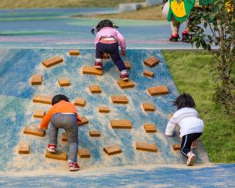 ▼兒童活動(dòng)區(qū),結(jié)合地形設(shè)計(jì)攀爬空間,場(chǎng)地鋪設(shè)透水材料,引流雨水