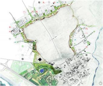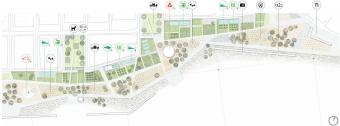 這個公園邊界線設計的總體概念是梯度,整合了三個主要的景觀條件,分別是:“生產(chǎn)的景觀(Productive landscape)”、“環(huán)境帶(Milieus strip)”以及“礦物質(zhì)海岸(Mineral shore)”。每個景觀組成部分的深度和重要性都能夠適應公園環(huán)路的特定條件。關鍵節(jié)點處的景觀規(guī)模非常宏大,與此相對應,其他區(qū)域的路徑系統(tǒng)則被設計成較為輕薄且簡約的感覺。