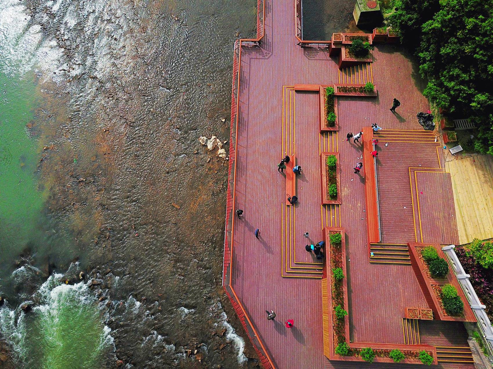 ▼借鑒非物質(zhì)文化遺產(chǎn)“大田板凳龍”設(shè)計形成河濱棧道