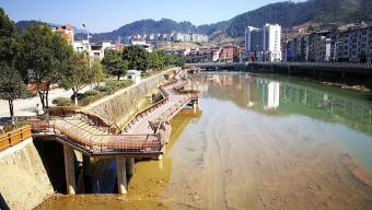 大田綠道濱河示范段始于縣城南門,連接老城區(qū)濱河棧道,向城郊濱河綠道過渡,整體風(fēng)格設(shè)計呈現(xiàn)出從人工到自然過渡。為改變均溪河一刀切防汛墻導(dǎo)致親水性差的現(xiàn)狀,離水面1米多高處設(shè)置4米寬的木棧道,打造大田第一條真正意義上的親水的棧道。