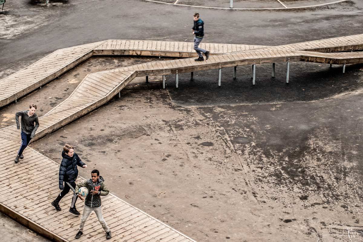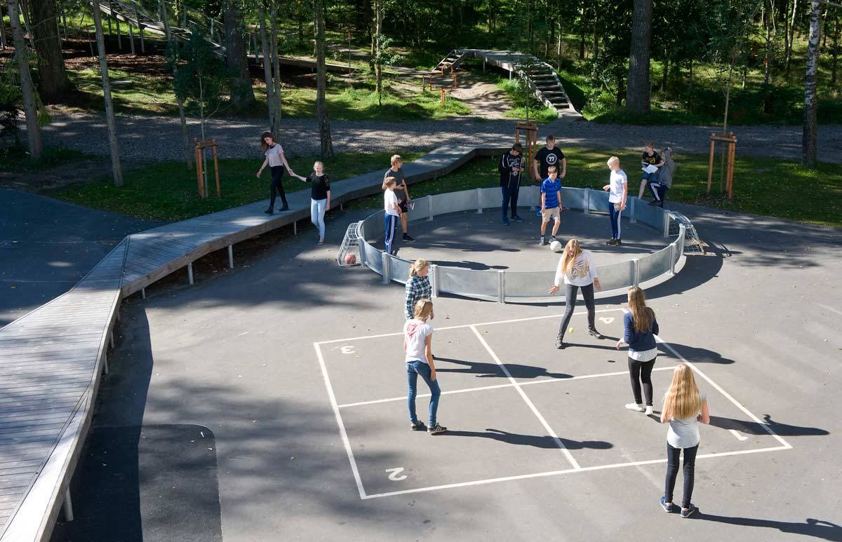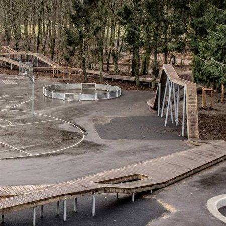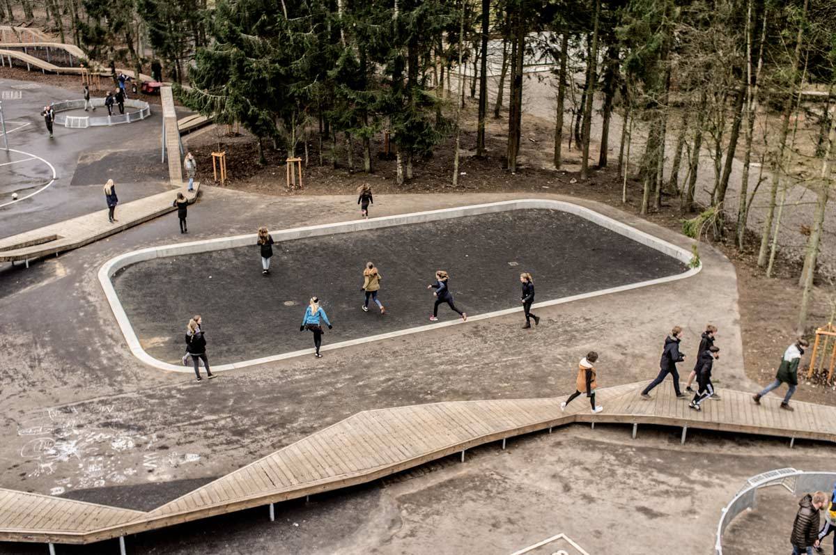 近年來,父母和研究兒童學(xué)的學(xué)者們,越來越關(guān)注學(xué)生在課間的活動情況和游戲、活動、運(yùn)動技能對學(xué)習(xí)能力的影響。為此,丹麥Realdania慈善基金會發(fā)起了一項(xiàng)增加在校學(xué)齡兒童戶外運(yùn)動積極性的活動,希望通過設(shè)計一座充滿樂趣和激情的校園游樂場,刺激學(xué)生的戶外活動興趣,同時提供“運(yùn)動式教學(xué)”和戶外教學(xué)課程。
