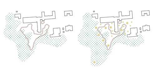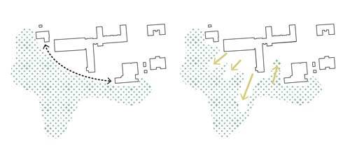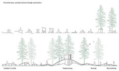 在校園和森林的交界處,為了設(shè)計更多富有魅力的邊緣地帶,以及自然銜接兩個空間,我們移除了部分不適合場地的植物,添加了幾種新的物種。
