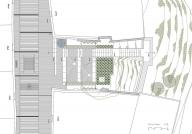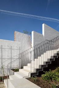 廣場(chǎng)與觀景平臺(tái)之間有混凝土板構(gòu)成的樓梯相連,如同懸浮在一系列“云朵”(花園中的植物)之上。
