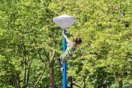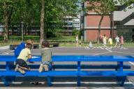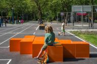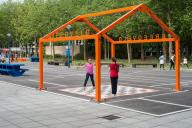 為了統(tǒng)一空間中的各種元素,所有這些設(shè)施都被涂成橙色和藍(lán)色。這兩種顏色同樣也是社區(qū)建筑翻新中所運用的兩種色調(diào)。通過色彩上的凝聚力,每個物體都被賦予了新的身份特征,他們共同組成了這個露天博物館的游戲元素。