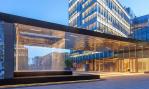 以景為宣,書寫光與影的變奏曲。主入口景觀區(qū)一氣呵成的形體關系,舒展有力,敘事動線簡潔明確,在巨大的場地尺度上切割出多重場景體驗,成為視覺和精神的向心所在。大面積的鏡面水景創(chuàng)造出核心景觀空間,純凈的玻璃體建筑倒映水面,金屬的色澤和質感點綴這純凈空間。