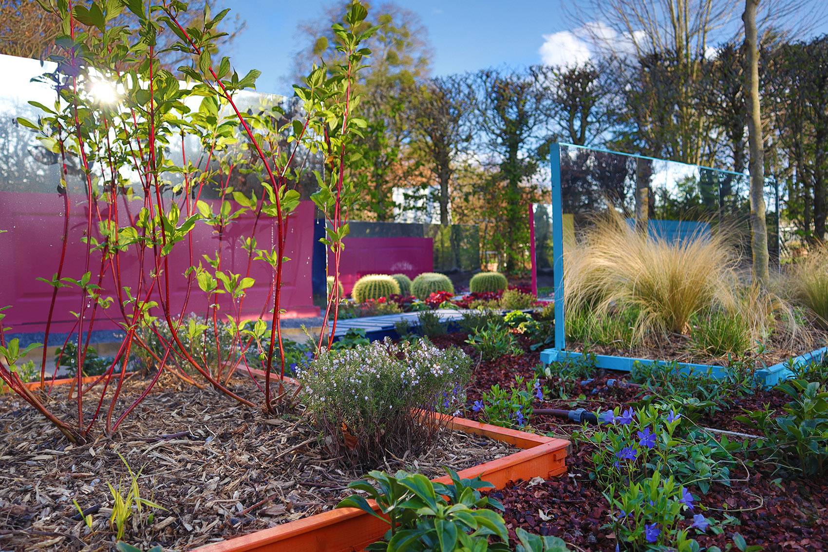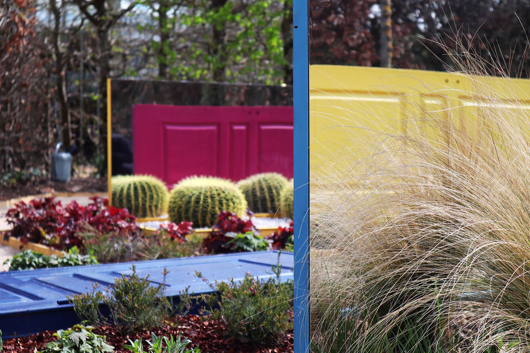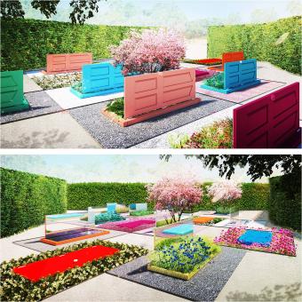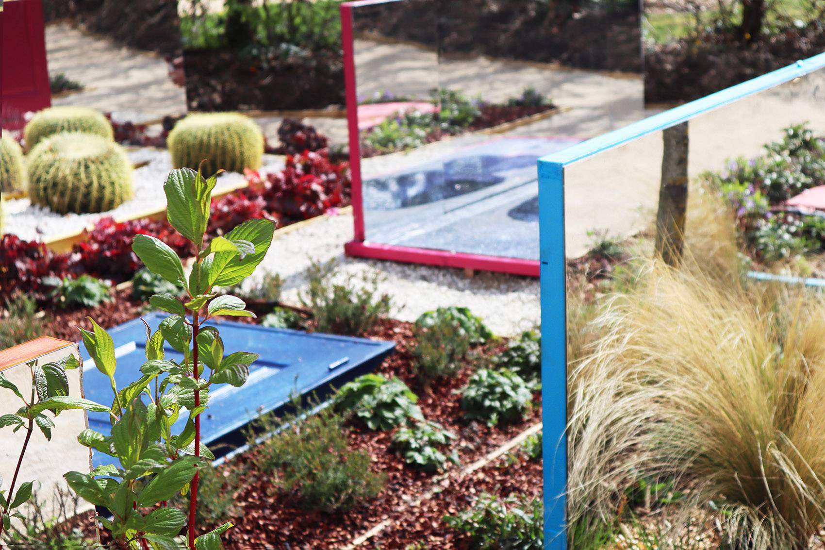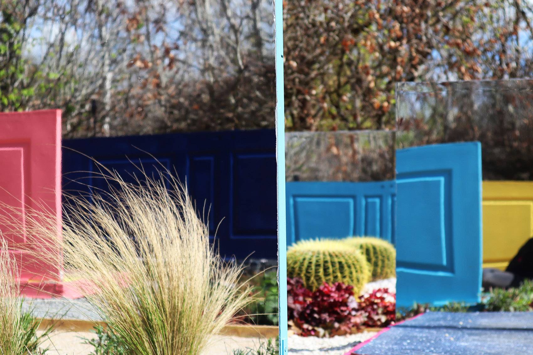 植物花卉的選擇條件雖然簡(jiǎn)單,但是可以在整個(gè)國(guó)際花園節(jié)期間綻放,呈現(xiàn)出色彩斑斕的效果。從西洋薇等蕨類植物、草原鼠尾粟等多年生草本植物,到小花樹(shù)、加拿大紫荊,不同門后的天堂會(huì)有不同的顏色和不同高度的植物。設(shè)計(jì)師還使用了一些人造材料,比如用于反射天空的鏡面,還有一些銀河星系的海報(bào),為天堂景觀增添了一分超現(xiàn)實(shí)主義色彩。