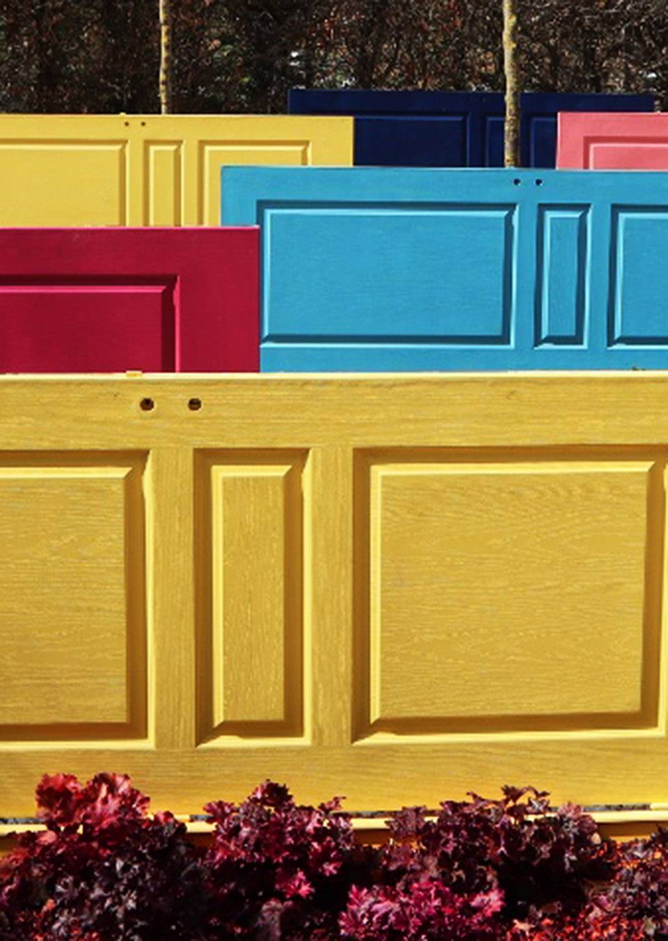 在設(shè)計(jì)師的理解下,天堂是人們想象中的不真實(shí)卻極度美好的景觀。設(shè)計(jì)作品中的“門”象征著天堂的入口,為人們提供欣賞不同天堂景觀的機(jī)會(huì)?!?0道門”花園由多個(gè)被放置在地面上的門組成。門的排布呈網(wǎng)格狀。由于有些門是緊閉的,而另一些門則是半開(kāi)或完全打開(kāi)的,所以門背后的景觀會(huì)有不同程度的呈現(xiàn)。