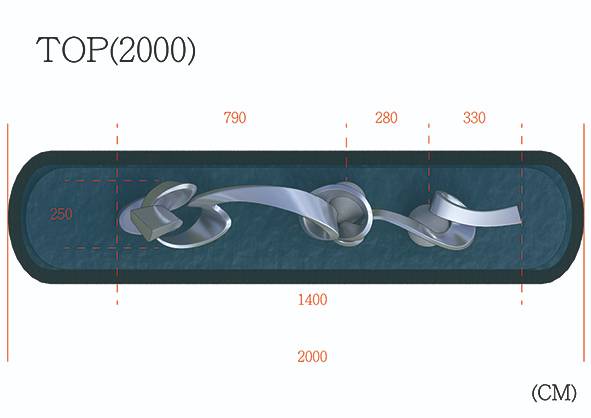 作品長達(dá)15.9m,高4m,采用#316K鏡面不銹鋼鍛造 ,考慮臨海環(huán)境的鹽堿腐蝕情況在雕塑表面附貼銀箔。