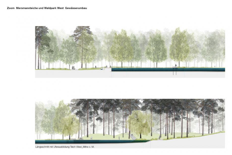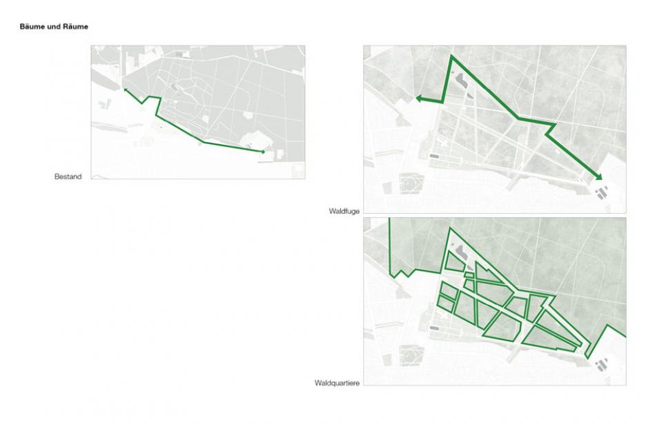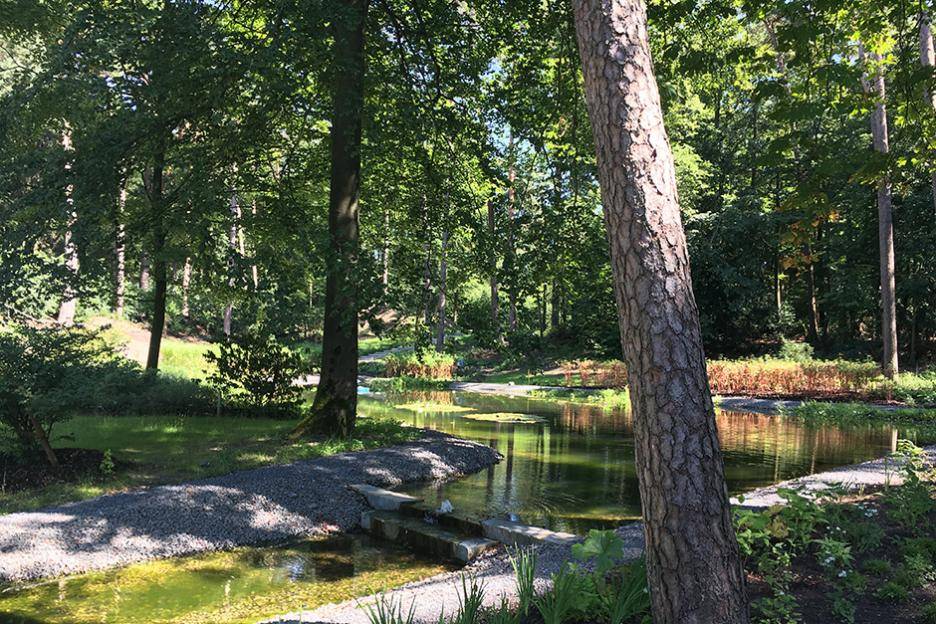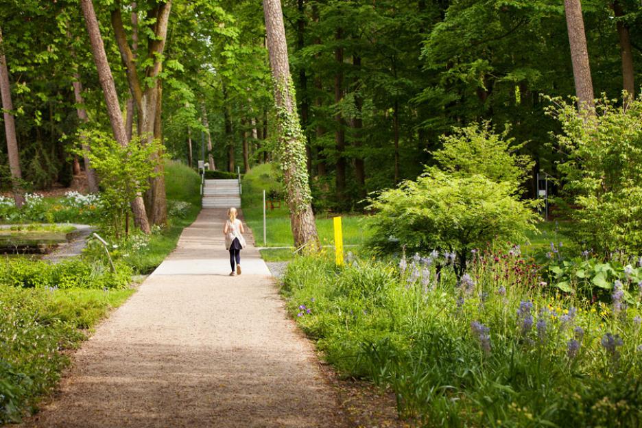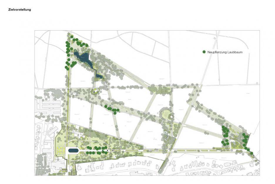 現(xiàn)有的中心軸被重新詮釋,兩條軸線將長廊的概念延伸到北部和東部。對于多年生植物的運(yùn)用和替代種植,創(chuàng)造出了令人印象深刻的空間體驗(yàn),不同的空間景觀被編織到現(xiàn)存森林的網(wǎng)格之中,而在不同地區(qū)重復(fù)使用的材料則重新統(tǒng)一了整個(gè)公園的觀念。
