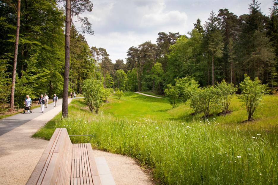 這是一個(gè)位于德國Bad Lippspringe的療養(yǎng)森林公園。園藝展在森林中進(jìn)行并全年開放,花園通過大型開放式軸線完成了從森林到森林公園的過渡。森林公園的形式是這個(gè)項(xiàng)目最大的賣點(diǎn)。如今,它已經(jīng)變成了Bad Lippspringe這座城市獨(dú)特的象征。該項(xiàng)目為設(shè)計(jì)居住區(qū)附近的森林提供了新的思路。公園成為了居住區(qū)、歷史療養(yǎng)勝地和休閑空間組成的網(wǎng)格中密不可分的一部分,它不僅在空間上,而且還在大氣層面和周圍區(qū)域相連接。公園被打造成了一個(gè)全新的療養(yǎng)勝地,并且作為一個(gè)全年開放的休閑娛樂場所向公眾開放。