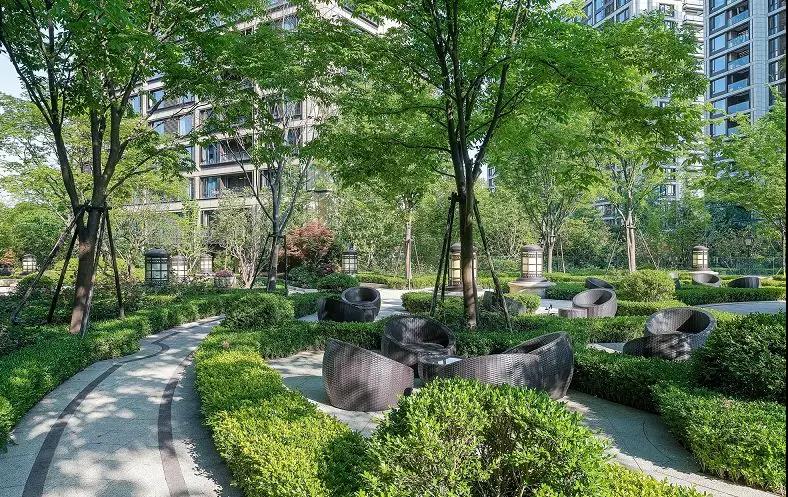 園區(qū)的休憩空間由灌木隔離,形成獨立的場所。閑坐其間,放眼望去是一片碧綠成景,喬木的枝葉伸展形成蔭蔽,有陽光從葉間鋪灑,與繽紛的園區(qū)一起譜寫浪漫的詩章,而人們也在這首浪漫之詩中互通鄰里之情。