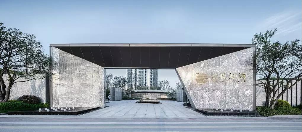 示范區(qū)的入口是留給前來游覽的人們的第一印象,具有引導(dǎo)、標(biāo)志的作用,宏偉挺立的大門容易令人產(chǎn)生大氣、壯觀的好感,悅虹灣項目除了將入口處設(shè)計的恢弘氣派,還運(yùn)用了“對景”的打造手法,呈現(xiàn)出“景中有景”的視覺效果,吸引著游覽者不自覺地想踏入示范區(qū),一探究竟。