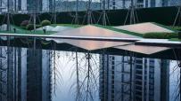 再往前深入,是另一番海闊天空的景象。大水面的打造與建筑相輔相成,使得空間在層層倒影中被無限放大,而草臺階的加入將這寥落空間的層次勾勒出別樣的起伏。天地間驟然開闊起來,那些藏在游覽者心中的郁結(jié),也隨著這遼遼的景色逐漸舒緩。
