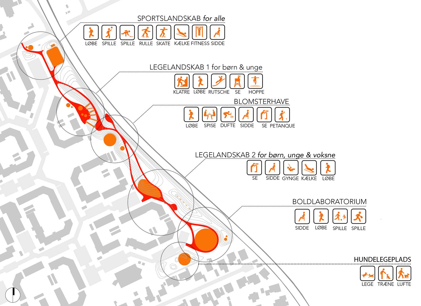 Kastrup活動場地曾是一片堆滿建筑廢料的工地,如今成為了一座全新的社區(qū)公園。景觀設計師改善了場地既有條件,同時創(chuàng)建了新的景觀娛樂設施,將這一位于80年代V?gterparken居民區(qū)和地鐵軌道之間的狹長地塊,發(fā)展成為社區(qū)中的重要資源。