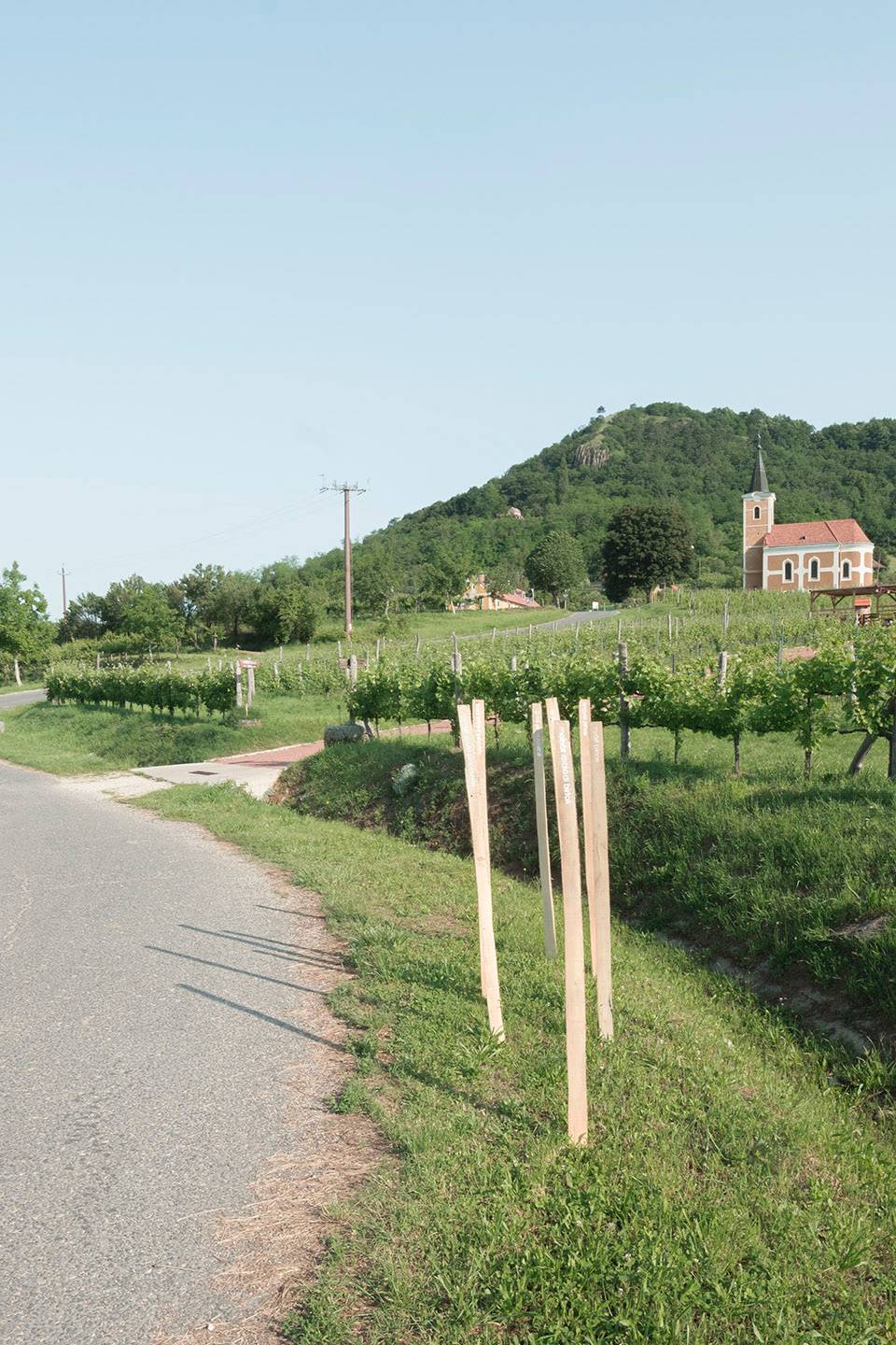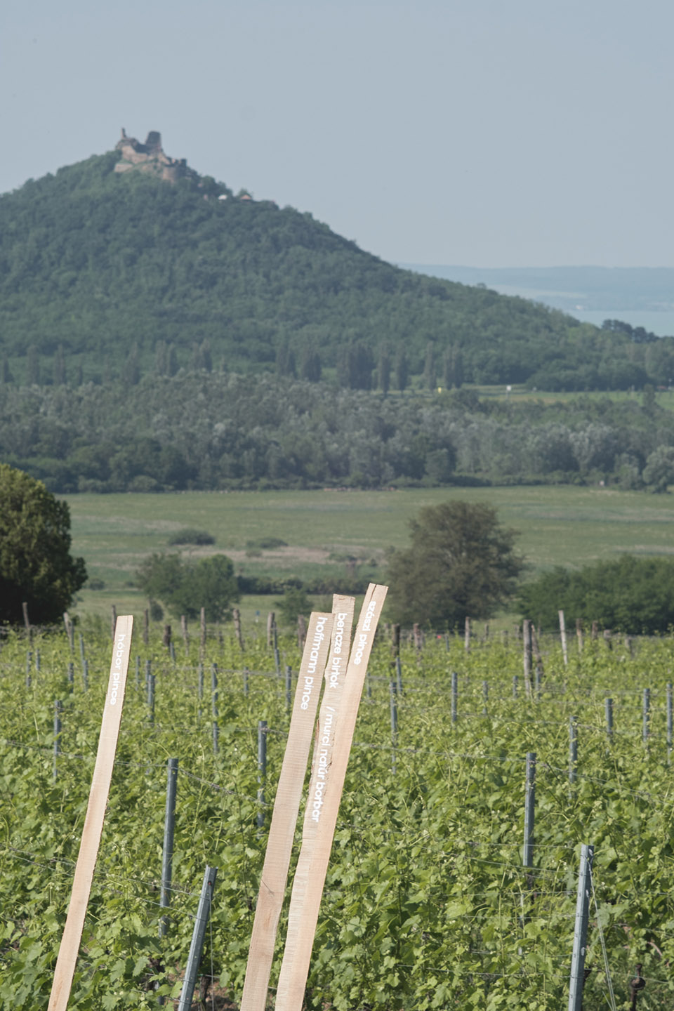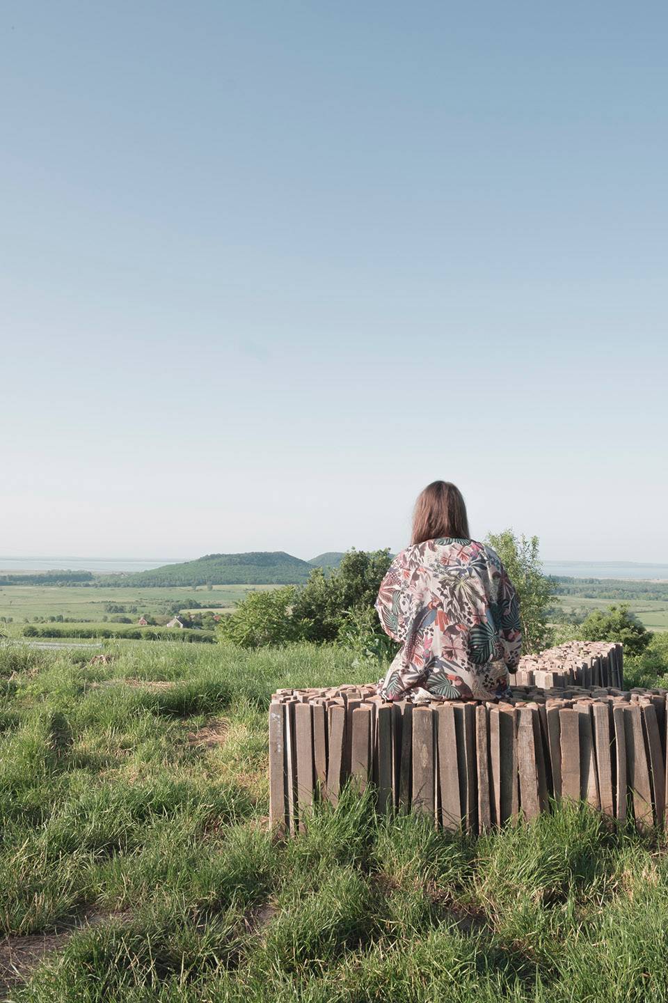 場地位于Szent Gy?rgy-hegy山,擁有可以眺望Balaton湖的絕佳風(fēng)景。設(shè)計(jì)團(tuán)隊(duì)與葡萄酒節(jié)的組織方合作,不以功能限制設(shè)計(jì),而是以為游客帶來豐富的體驗(yàn)作為目標(biāo),打造出一個(gè)可以供游客休息和欣賞風(fēng)景的場所。為了體現(xiàn)出場地的獨(dú)特性,設(shè)計(jì)團(tuán)隊(duì)以當(dāng)?shù)仄咸褕@常見的洋槐樹木樁以及山上的玄武巖構(gòu)造作為主要的材料和靈感來源,并通過簡單的方式將這些木樁緊密地排布在一起以構(gòu)成長椅。雖然每根木樁之間沒有任何連接,最終卻形成了一個(gè)極為舒適的表面。