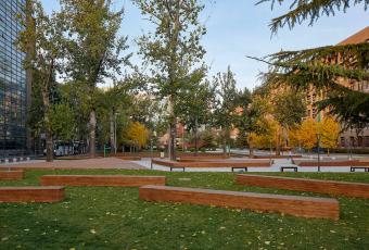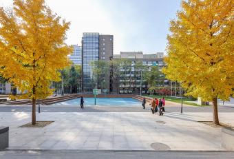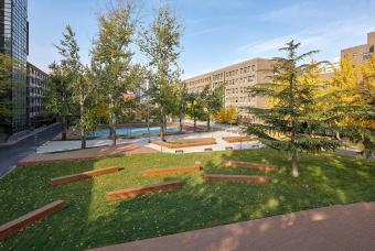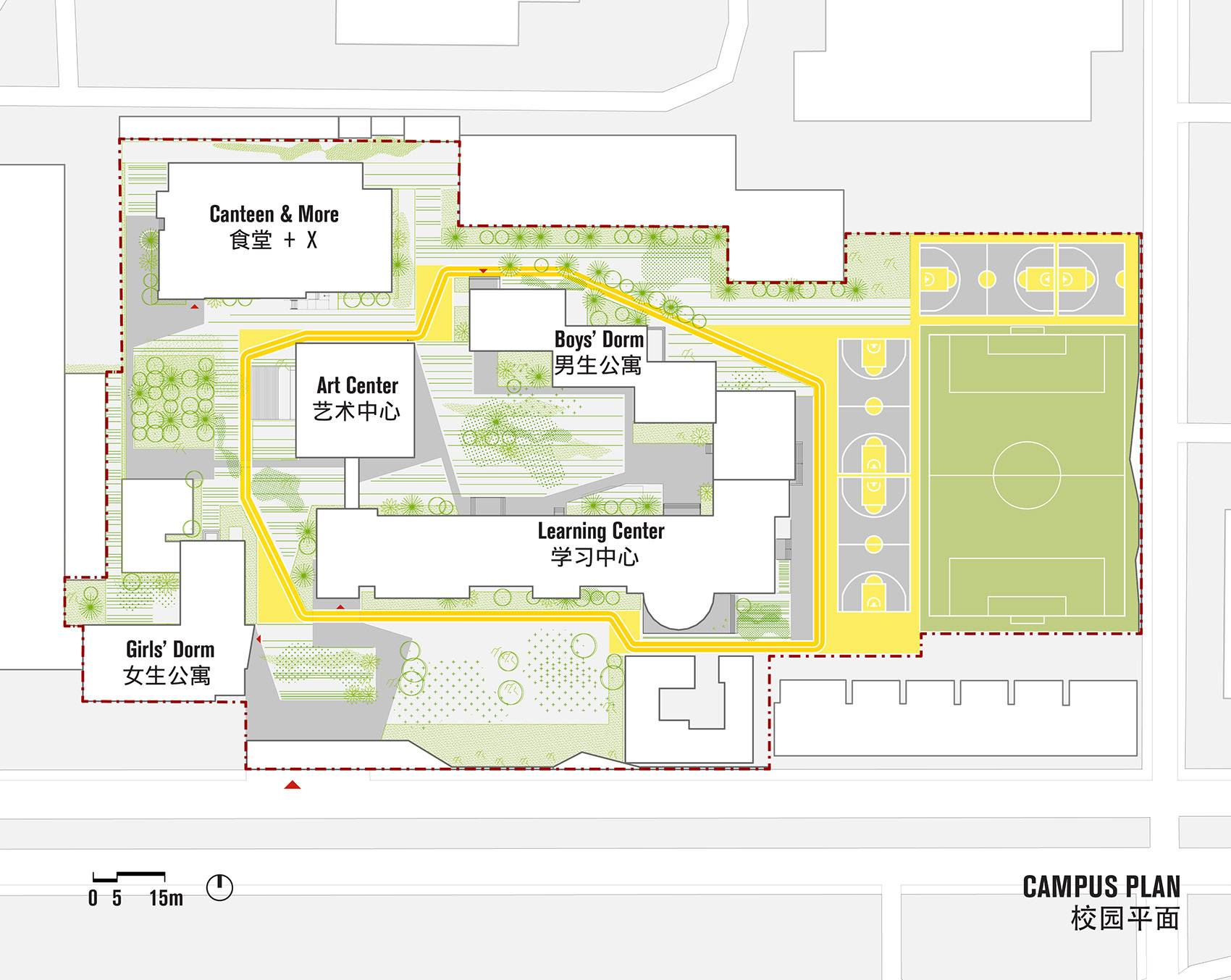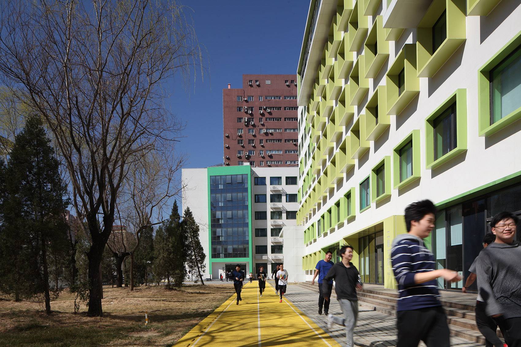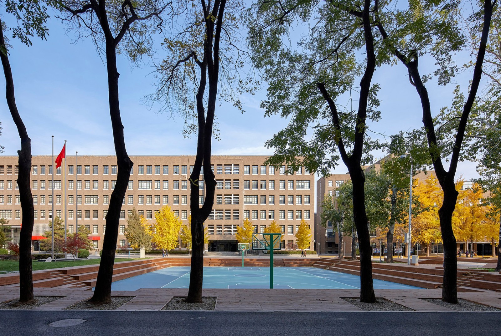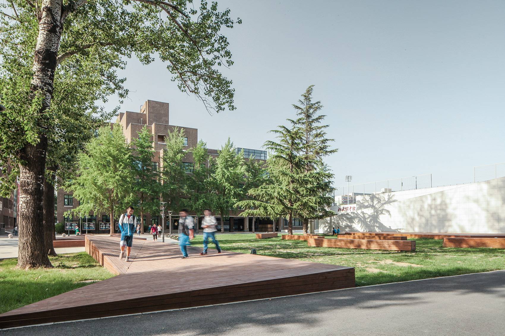 在國內(nèi)略有些年頭的校園或單位大院里,總能見到主配樓、運動場、綠化區(qū)等功能區(qū)規(guī)矩排布,其間以車行干道串連的空間格局。始建于上世紀(jì)60年代初的北大附中本校也不例外。半個多世紀(jì)以來,其校園面貌雖幾經(jīng)更迭,仍保留了很多歷史的痕跡。時值今日,北大附中提出“以學(xué)生為中心”的全新教育理念,鼓勵學(xué)生釋放天性、自主決策。校方繼2016年委托Crossboundaries對其教學(xué)空間、體育館和藝術(shù)中心進(jìn)行改造后,又計劃調(diào)整這座老校園核心區(qū)的景觀。