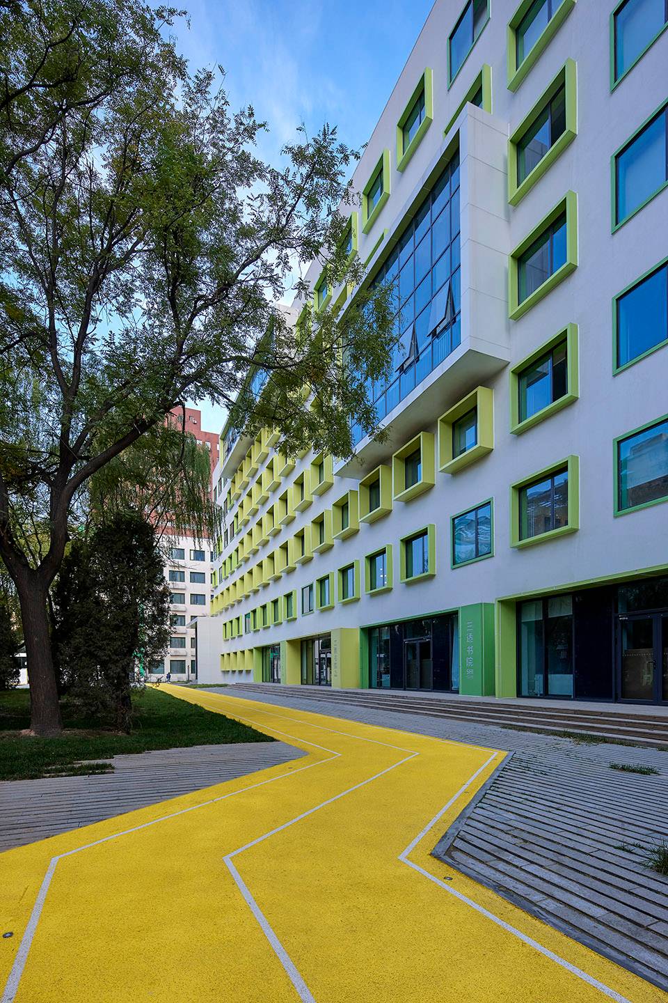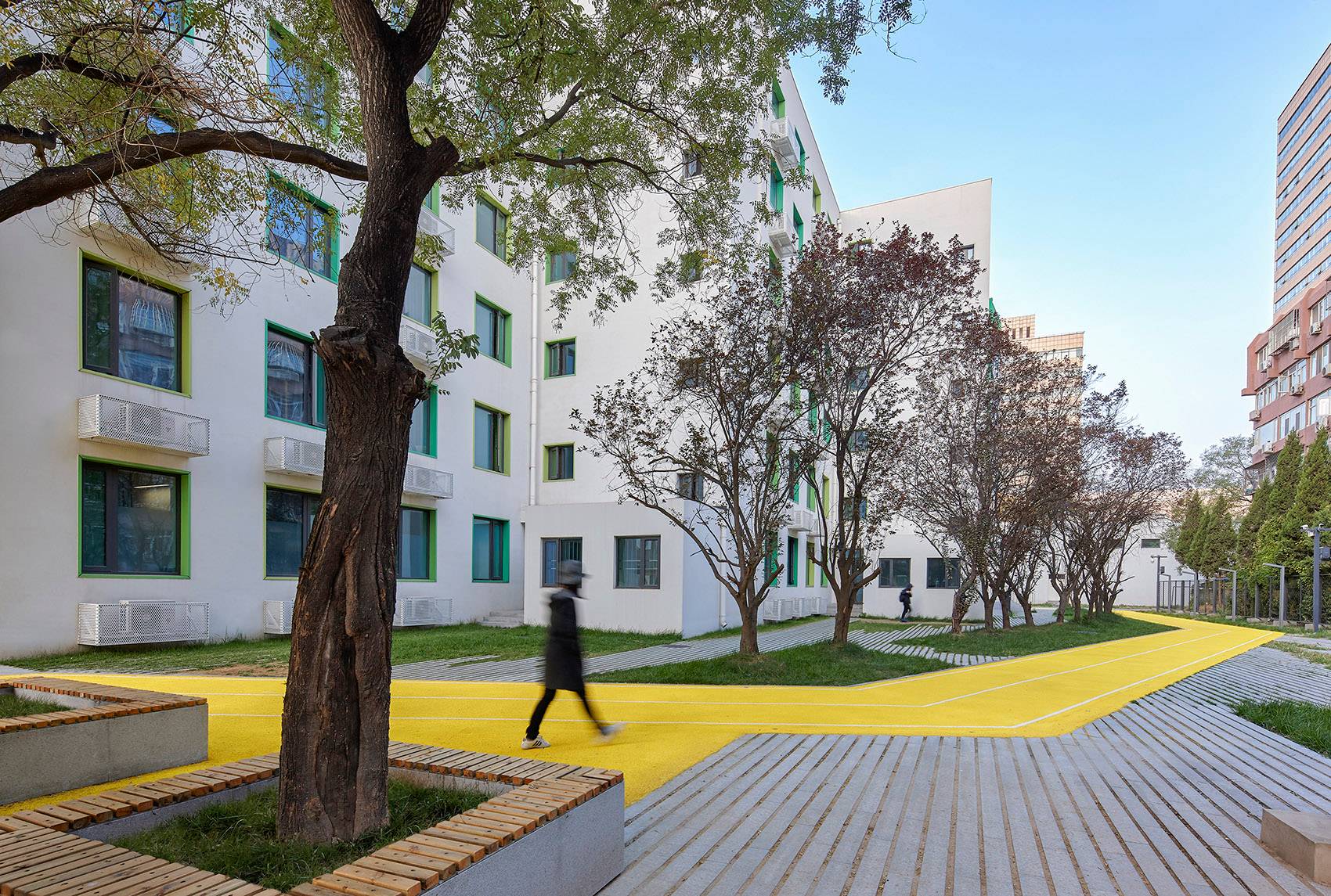 眾所周知,如今,在很多創(chuàng)新教學(xué)空間,自由布局的教室和走廊正成為“標(biāo)配”,其背后的理念是將對空間的支配權(quán)更多地還給學(xué)習(xí)者,激發(fā)他們的主動性。那么校園呢?作為全校師生通行、活動、駐留的綜合場所,校園豐富的層次更加接近真實社會,也就比很多功能空間蘊含更多跨界、多元的教育和交流機會。所以,校園同樣——甚至是更需要一個寬松、友善的語境,讓孩子們在一生當(dāng)中最富生機、充滿可能的年華,有機會在這座“舞臺”上反復(fù)彩排自己的人生未來。